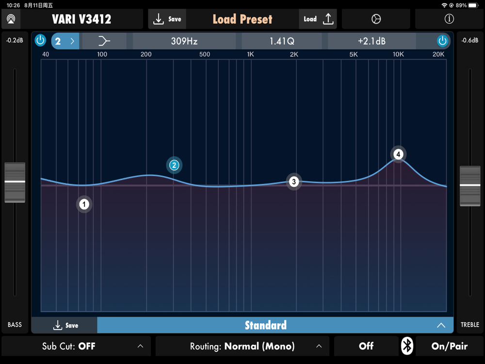 ·Bass and Treble – these are knobs on the hardware, and controlled by sliders in the app