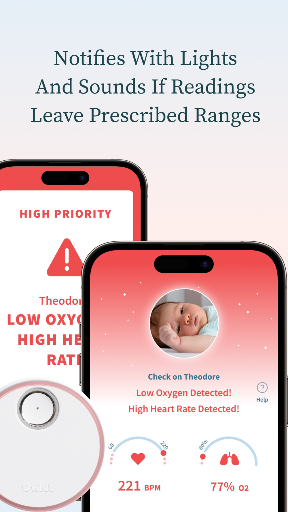Customizable Alerts: Receive real-time alerts on the included Base Station and in the App itself if your infant’s health indicators fall outside the preset ranges. These ranges are set by your doctor based on your baby’s specific needs, and can be adjusted at any time.