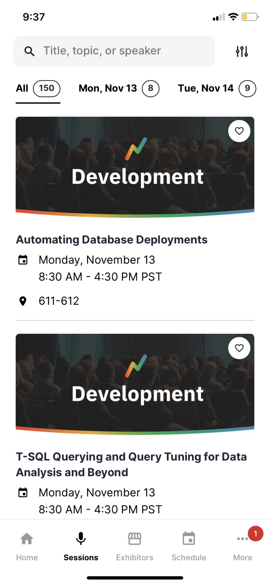 -Session and speaker catalog: check all event session details like time, speaker information, and where it takes place.