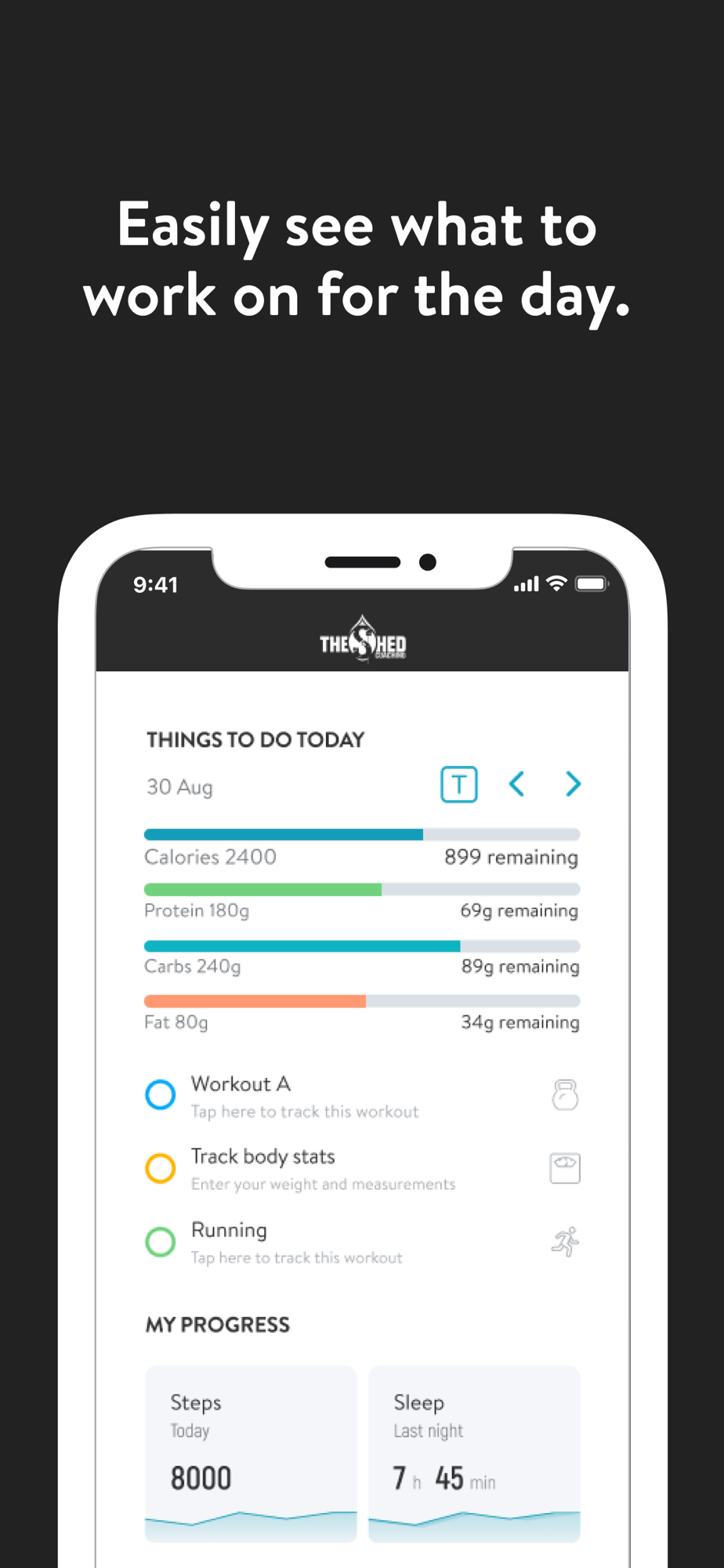With THESHED Coaching App, you will have access to workout programs designed specifically to help you reach your fitness and health goals! You can follow & track your workouts, your nutrition, your lifestyle habits, measurements and results–all with the help of your coach.