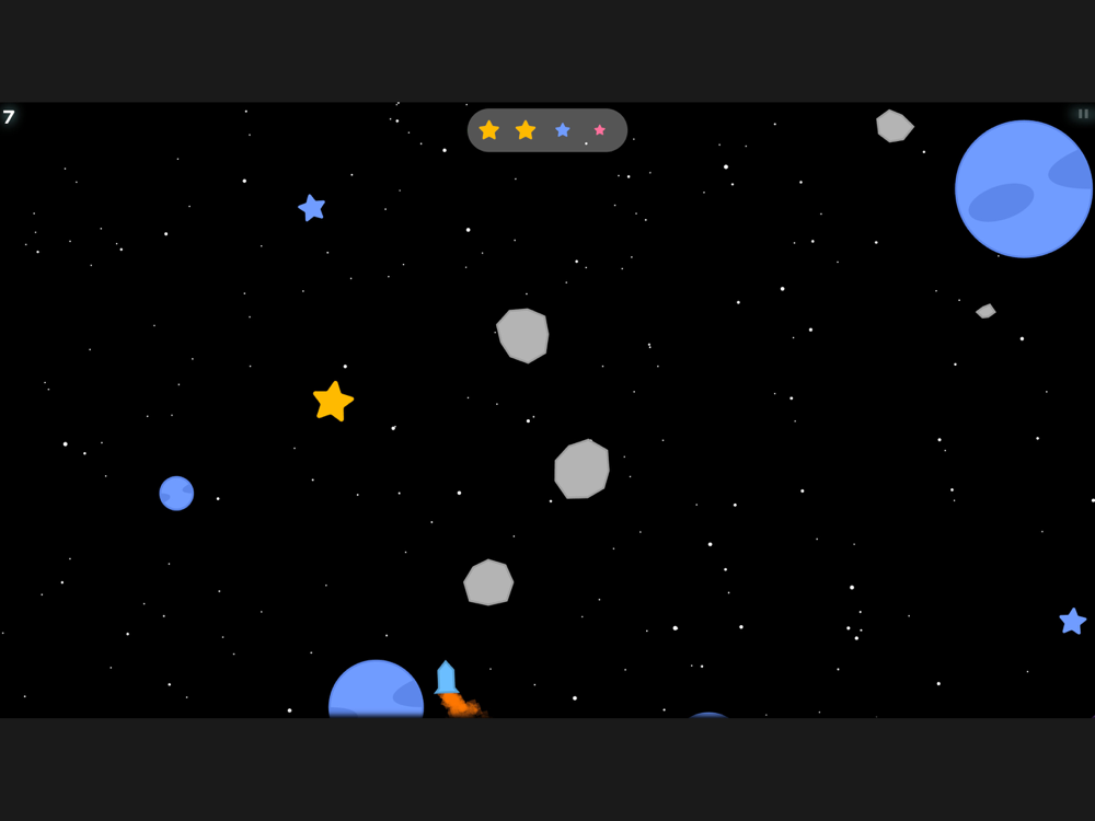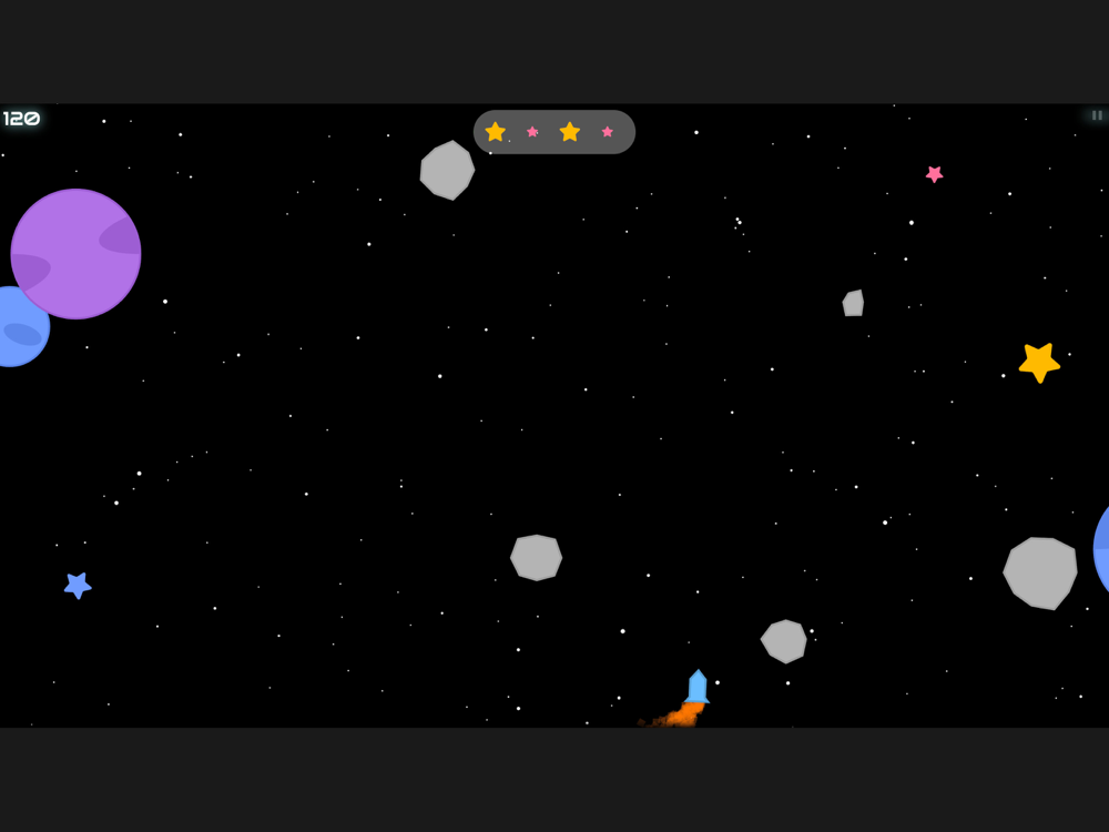 Pilot a rocket and grab all the bonus stars in this infinite runner in space! Score as many points as you can, but beware: this galaxy is full of planets and asteroids that will destroy your rocket on contact. How long can you last? Can you earn your spot on the leaderboards? Can you achieve the prestigious rank of Platinum Master Navigator?