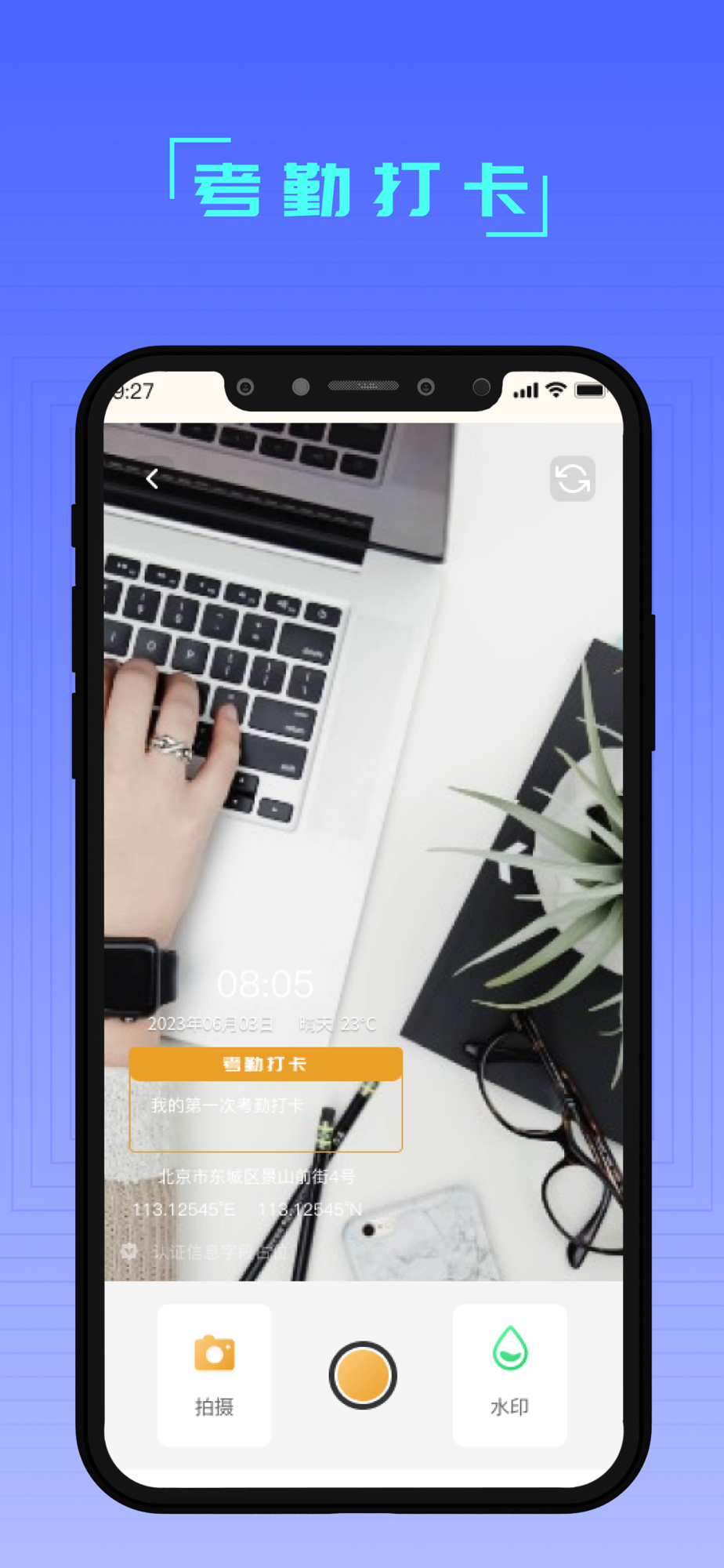 水印相机支持不同场景拍照水印,有丰富的水印模板。旅游打卡、考勤打卡、工程、物流等等打卡都有丰富的模板。