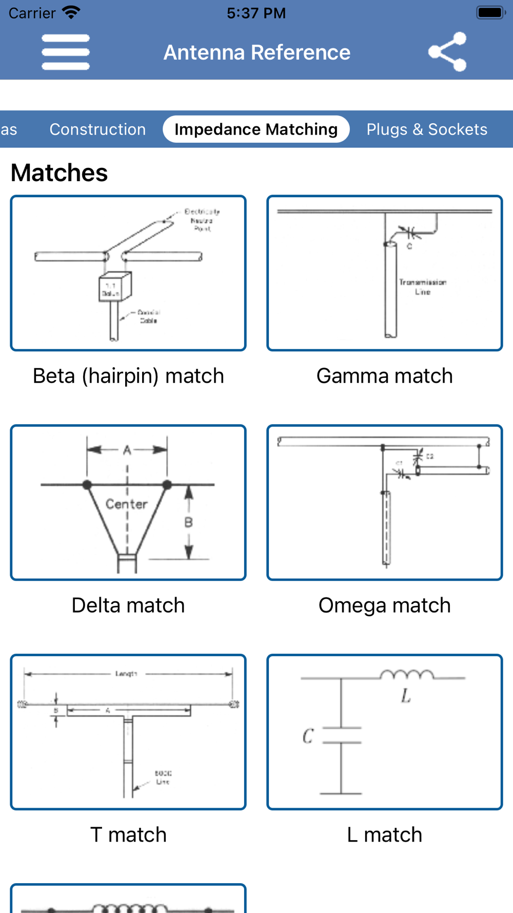 This App provides a comprehensive guide to antennas with a good selection of antennas to consider for construction. As well as the common dipole, 'V', Quad, Yagi and vertical antennas there are many others. The Discone, Windom, Zepp and J-Pole, the X-Beam and ZL Special - just to name a few. Also included are typical radiation patterns for each antenna, a wide range of impedance matching methods and a table of specifications for different coaxial cables and wire.