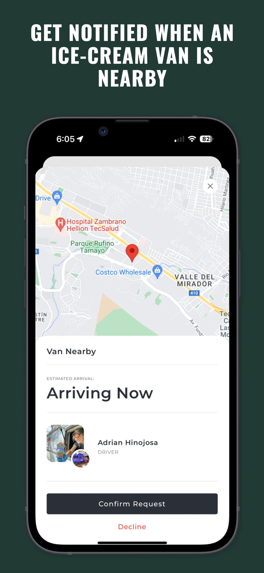 Craving a sweet treat? With our app, satisfy your ice cream cravings anytime, anywhere. Simply confirm your order when a driver is nearby, and your favorite flavors will be on their way!
