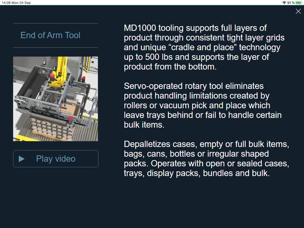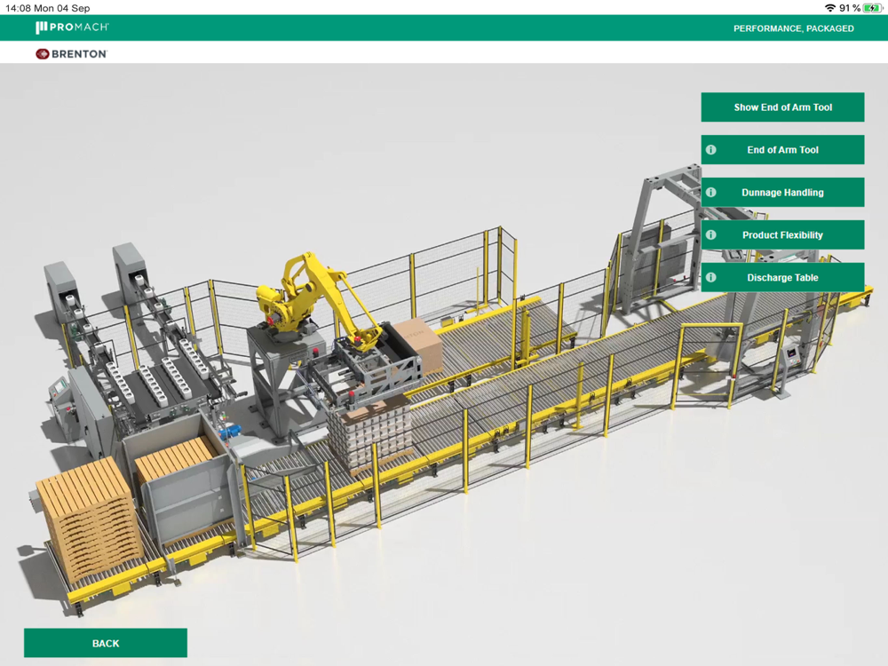 The MP1000 Bulk Robotic Palletizer and the MD1000 Bulk Robotic Depalletizer transfer consistent tight layer grids of product through a unique “cradle and place” technology that combines a servo operated rotary tool and slat system to handle full layers of product. Through this application, you can interact with these technological advancements first hand. Learn how Brenton meets virtually every automated palletizing challenge offers unparalleled flexibility, throughput and return on investment.