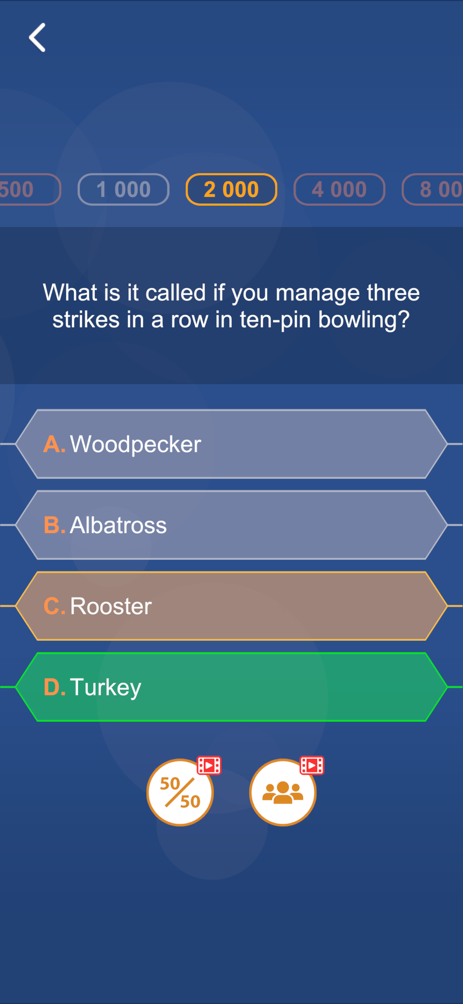 Millionaire is an addictive quiz game with multiple choice questions and answers.