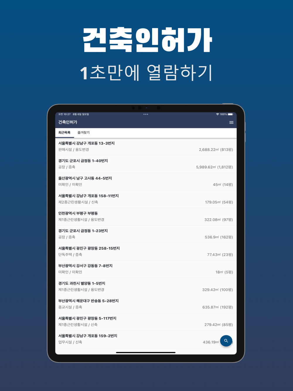 이제 여러분의 스마트폰에서, 단지 클릭 몇번만으로 쉽고 편하게 건축인허가 현황을 열람해보세요. 지금 바로 다운로드하시면 됩니다!