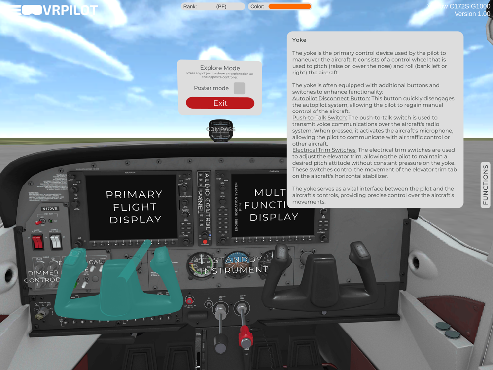 Boost your learning rate with VRflow C172S G1000, an advanced, interactive cockpit procedure trainer for the C172 with G1000 avionics. Get ready for your training, check ride or next flight with this strong learning tool, build specifically for efficient cockpit procedure training.