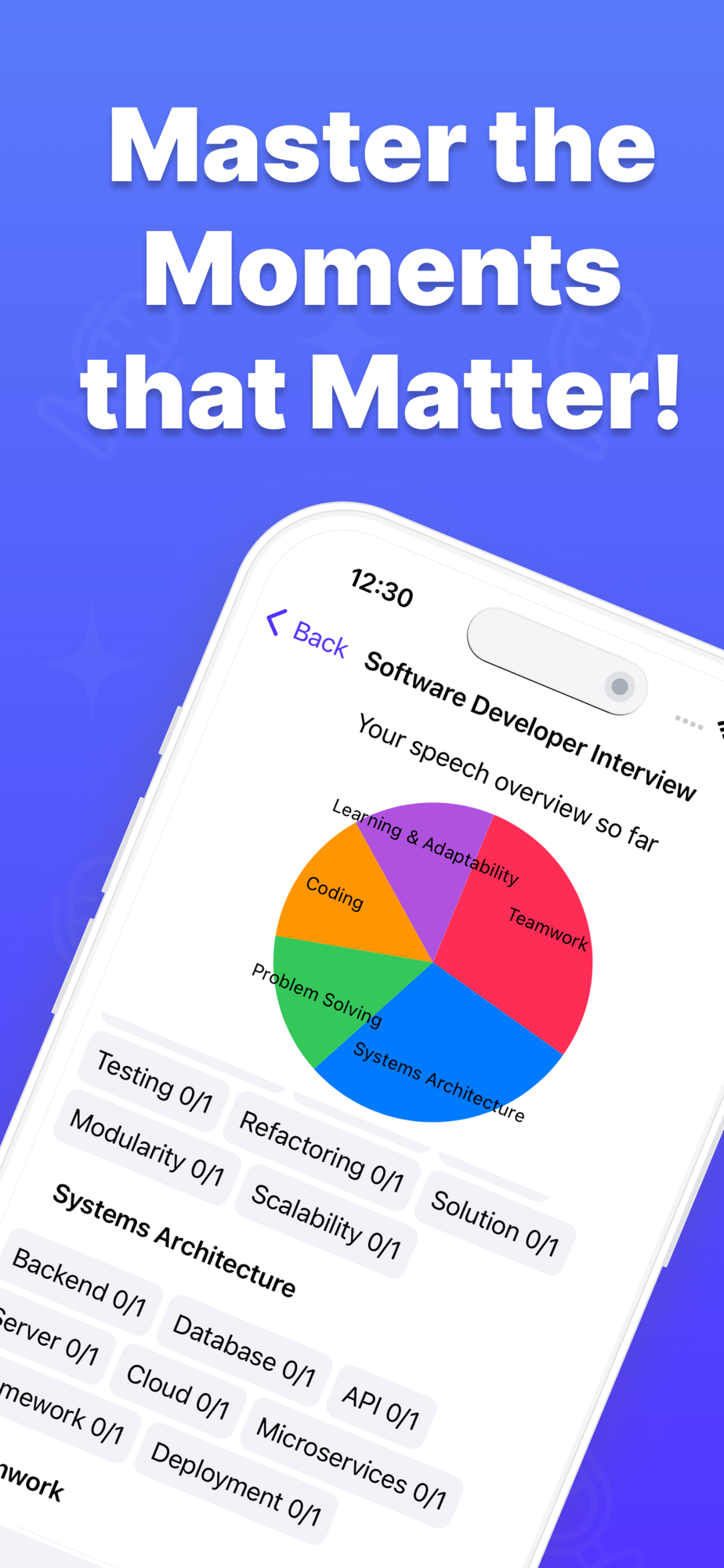 - For job interviews: Live tracking of addressed topics, so you’re always prepared.