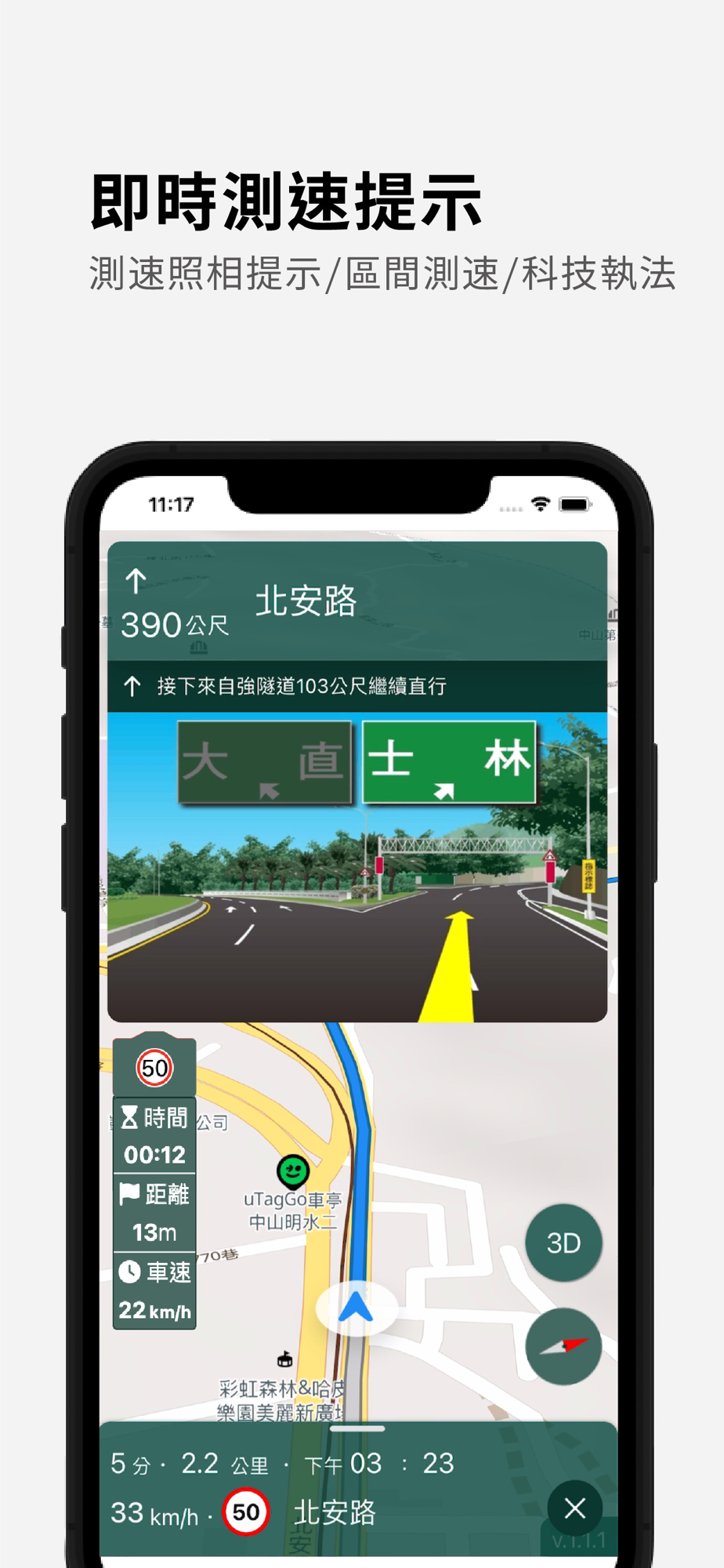 ◆ 提供測速照相提示/區間測速/科技執法功能。