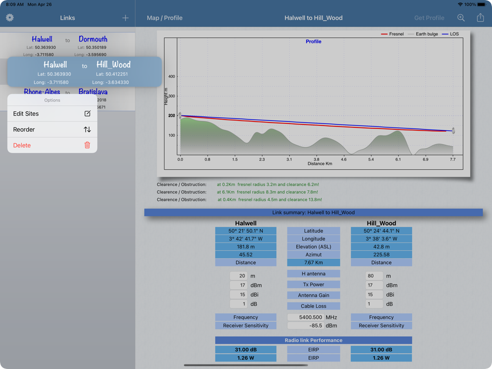 The RF Haversine (RF Propagation and profile Analysis Tool) bring our experience gained on Radio Propagation to the mobile market.