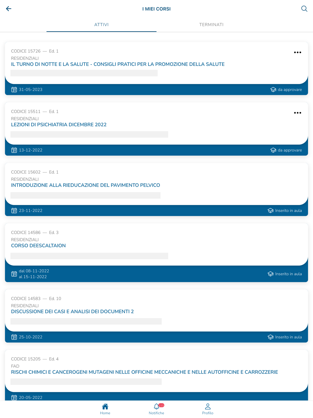 - ricevere notifiche sui corsi o sulle news dell'Azienda direttamente sul proprio dispositivo
