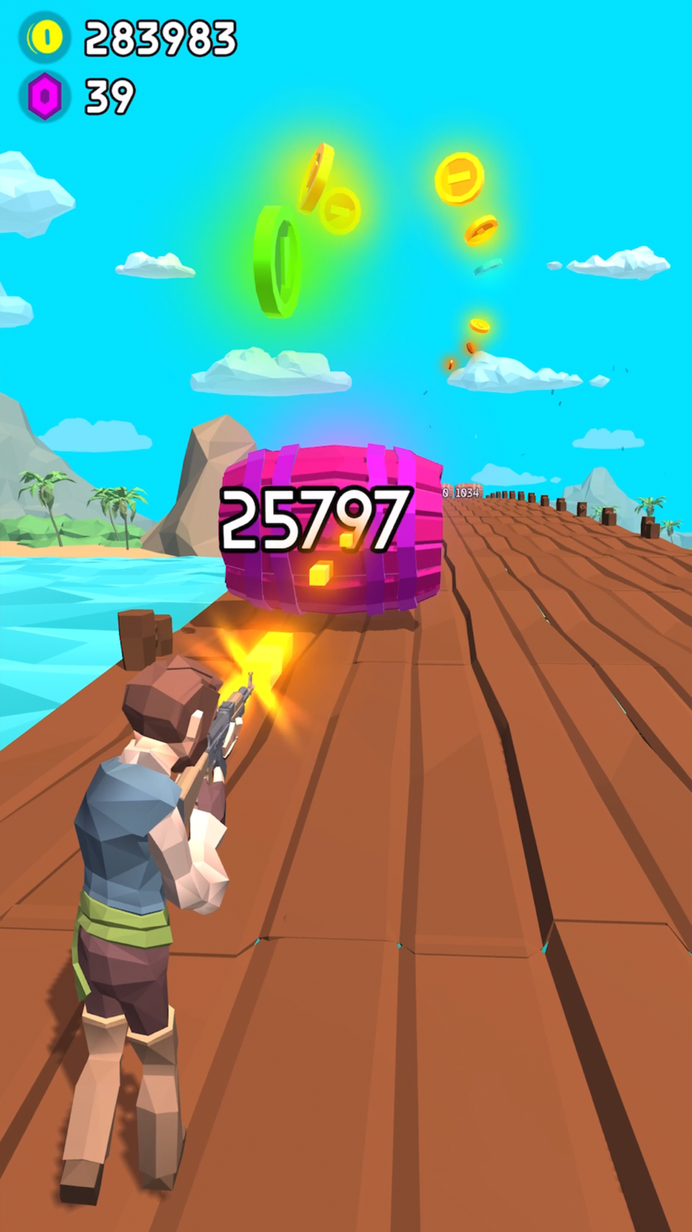 - UNLOCK AND UPGRADE NEW WEAPONS: When you reach higher levels you can unlock an arsenal of new weapons. A bunch of classic rifles with unique abilities. Upgrade your bullet damage, upgrade fire rate with the coins you collect by destroying the barrels and upgrade your coin earnings.