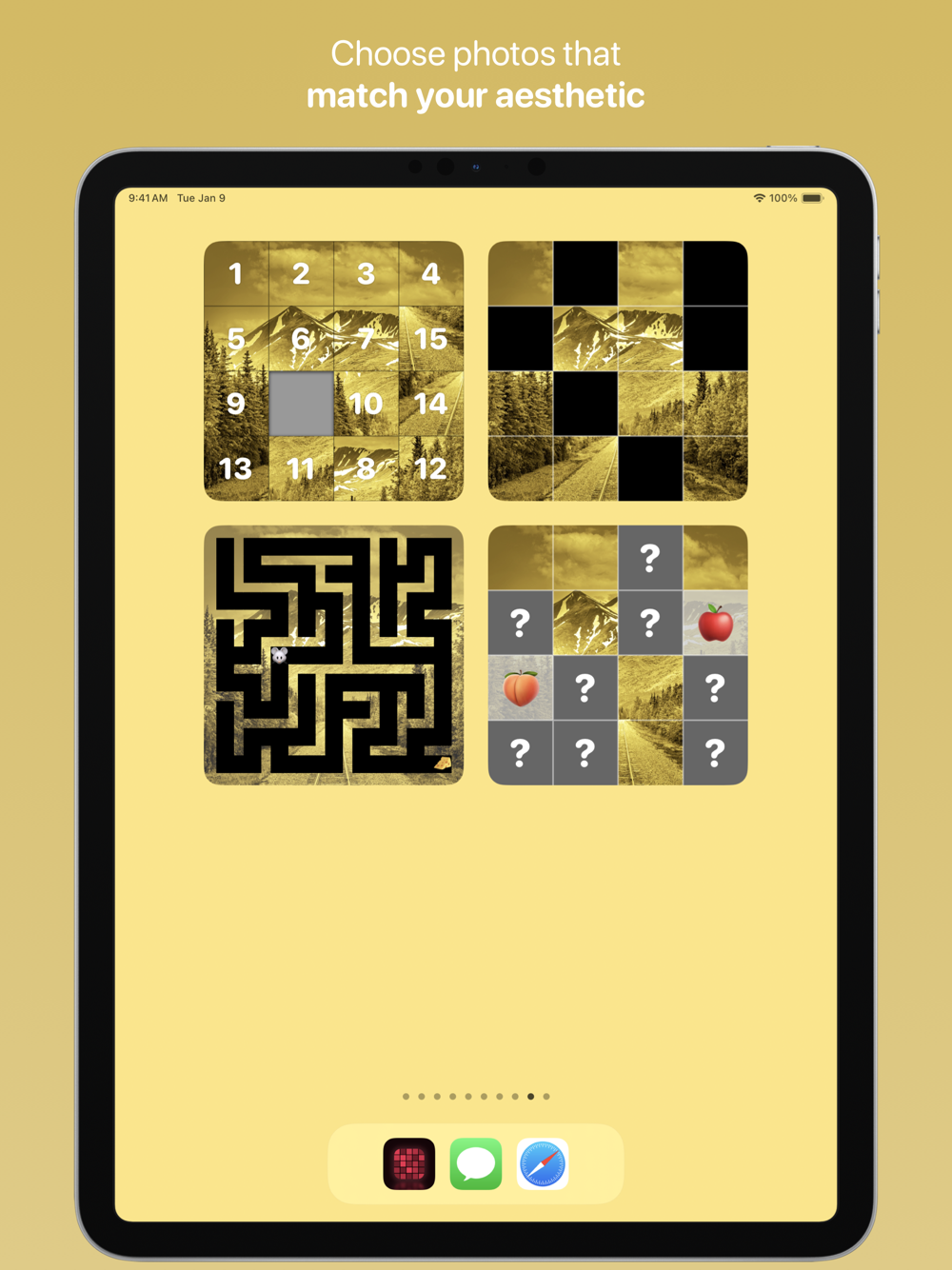 Customize the puzzle backgrounds with your own photos or images. Solve the puzzle to reveal the photo! Use your favorite photos, or any image that matches your home screen aesthetic.