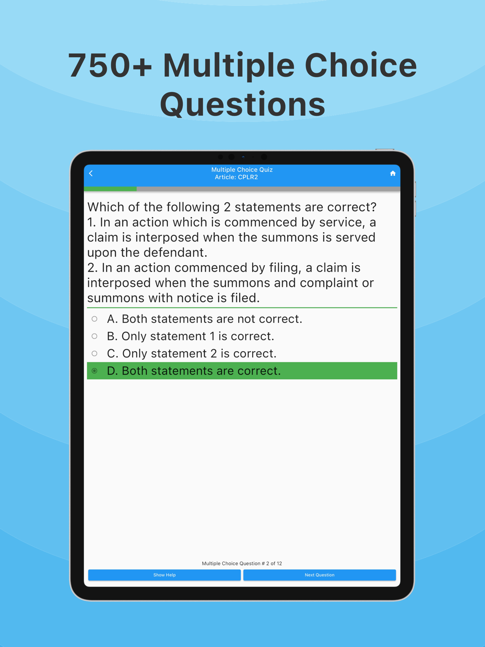 It covers all the CPL, CPLR, and FCA and other sections of the test, plus carefully detailed highlights of all the sections of law and more than 2,000 True/False and Multiple Choice, including the more complex multiple-choice questions. The app keeps track of your progress and offers words of encouragement as you navigate through the many articles on the scope of the exam.
