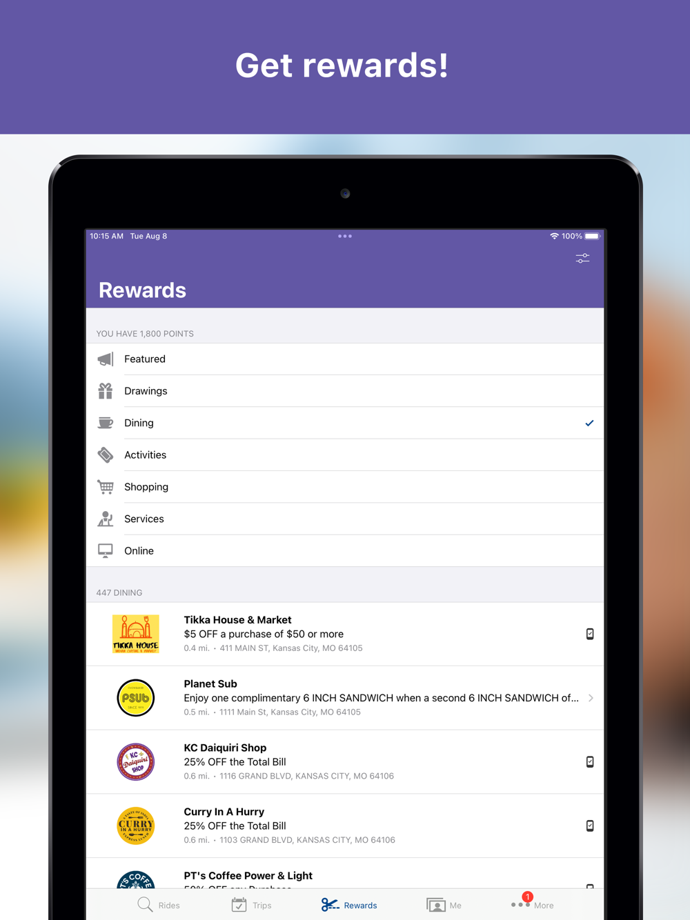 Use the WAY TO GO app to find rides and earn rewards in the greater Kansas City region.