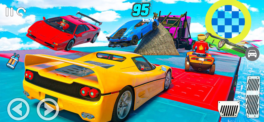 Drive your sports car in the stunts and obstacles of the open free mode! Will you climb the mega ramp?