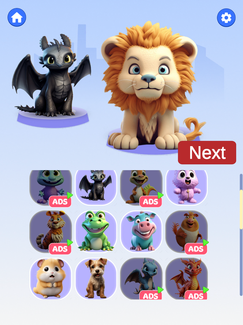 - Choose the animal species you want to combine: dogs, cats, pigs, chickens, dinosaurs, hippos, grimaces, bears, tigers, and more.
