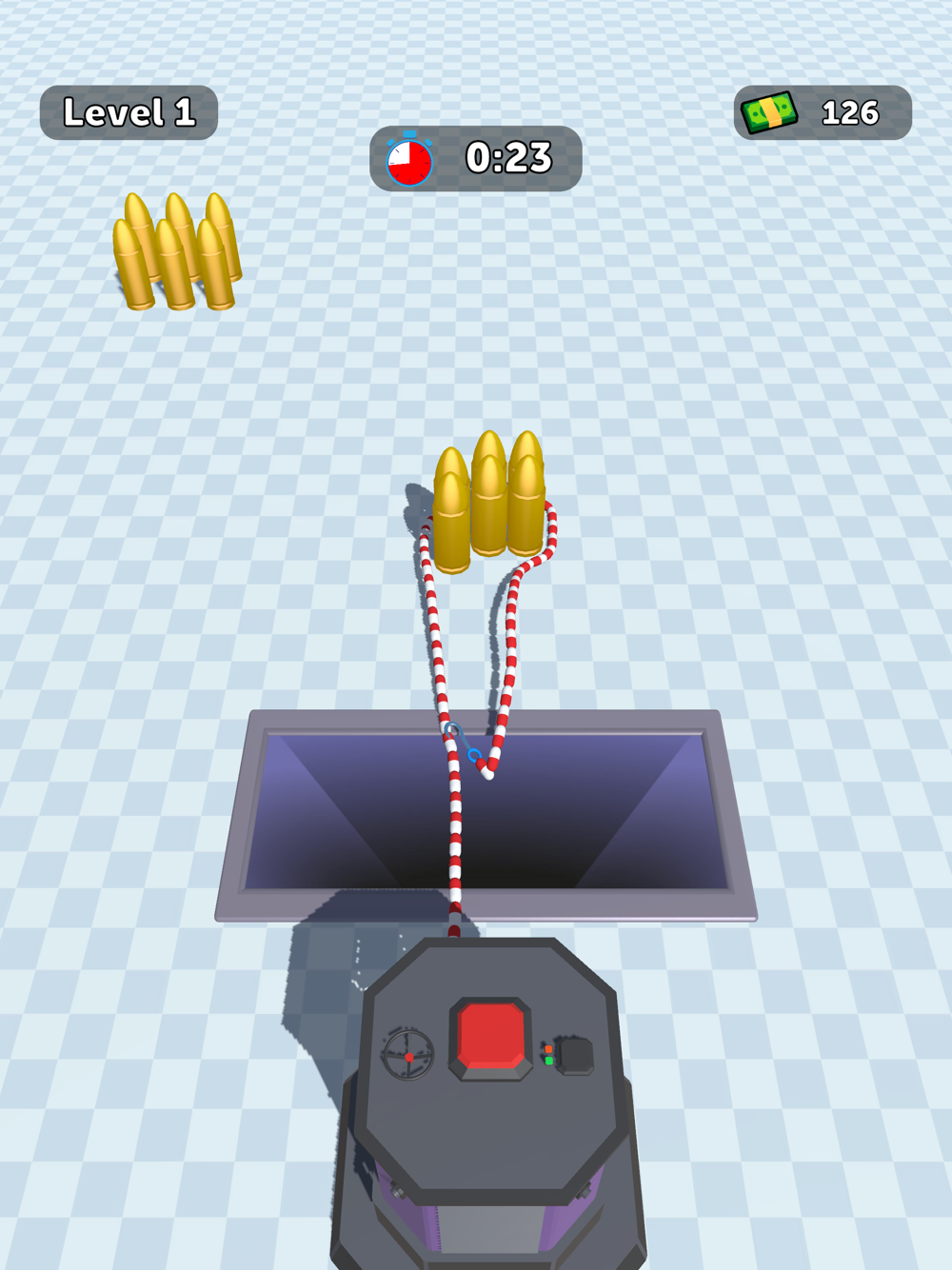 Try to collect the bullets without breaking the ropeeful saw and blades!