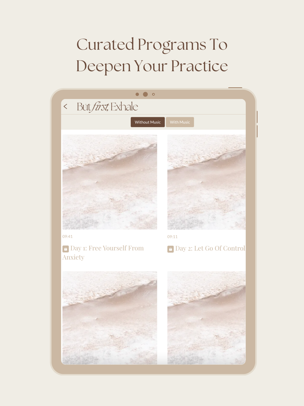 But First, Exhale is a new kind of meditation app that’s not just about a quick dose of calm that disappears as soon as you get back to your life. It’s about experiencing a deep transformation from within that allows you to live with an ever increasing sense of peace, freedom and clarity.
