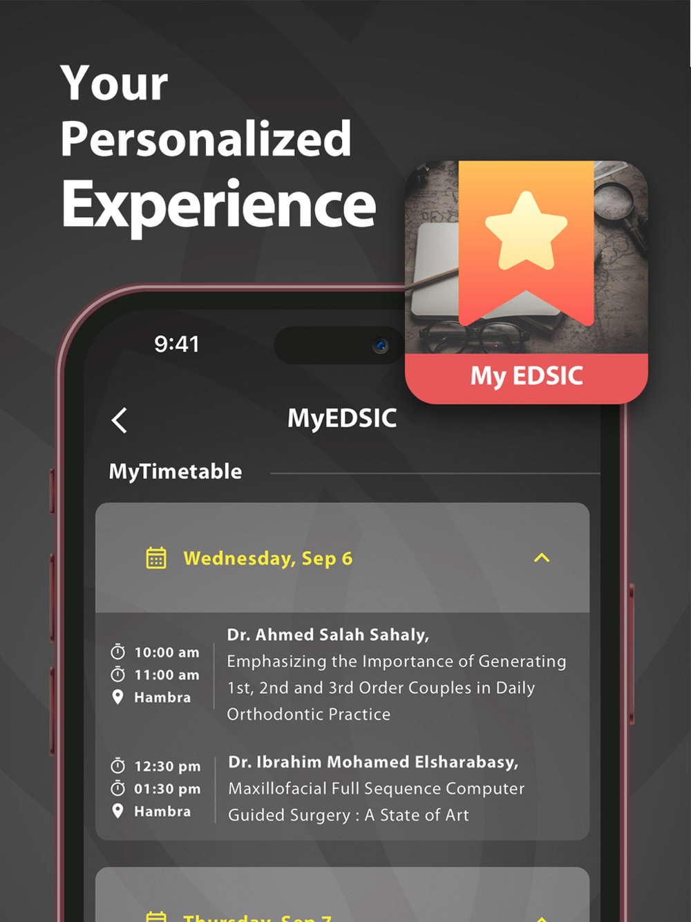 The official App of EDSIC, the international congress of the Egyptian Dental Syndicate held annually at Cairo, Egypt.