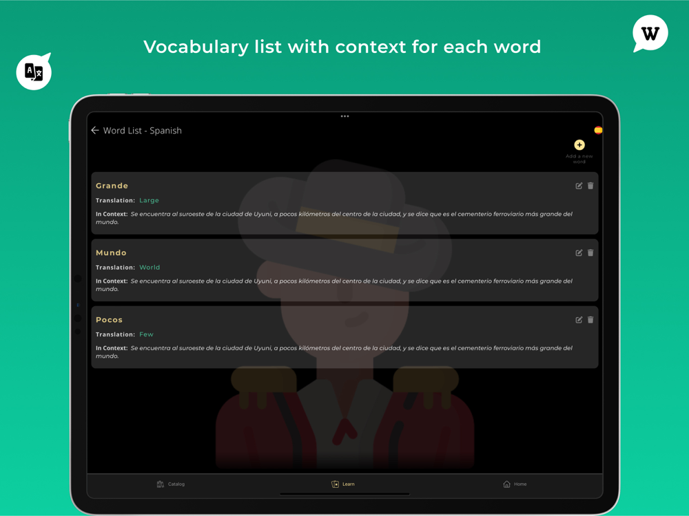 - Translation in your native language is always available, to help learn new words and enrich your vocabulary