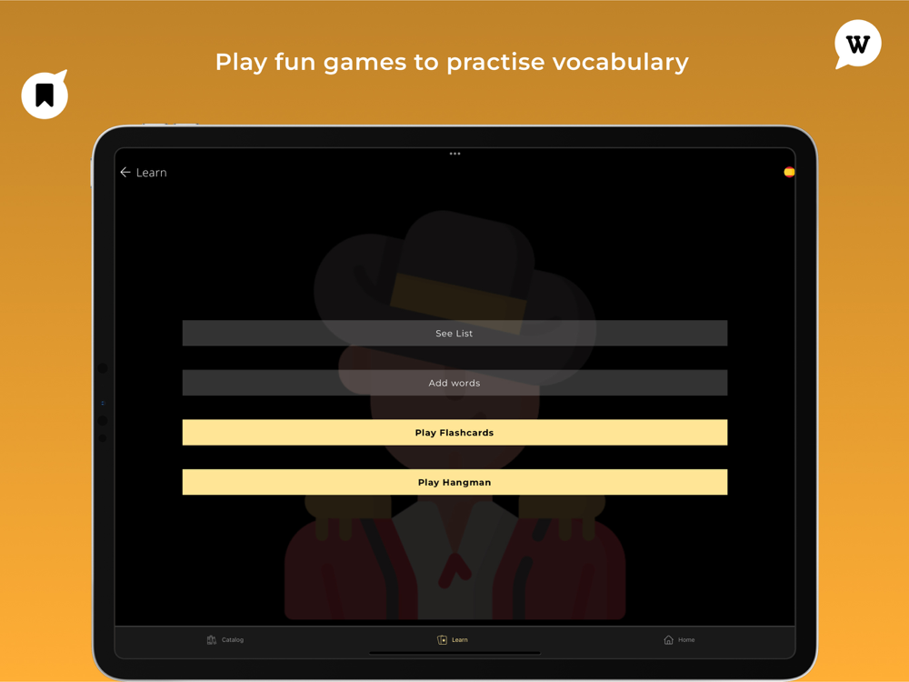 - save unknown words, study and learn them easily by playing Flashcards and put your new knowledge to the test by playing hangman