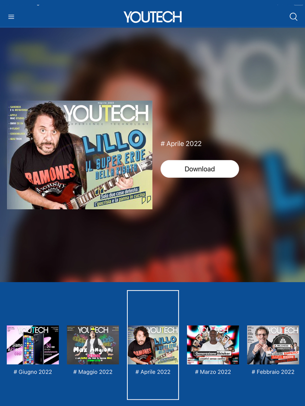 Disponibile per iPad e iPhone (consigliamo di scaricarla su iPhone 6/6S/6 Plus/6S Plus, ma si può leggere anche su iPhone con schermi più piccoli), YouTech Magazine è un viaggio digitale e interattivo nell’appassionante e vasto mondo della tecnologia, fatto con la tecnologia. Un magazine rivolto ai tech-fan e agli early adopter, con un linguaggio e un taglio coinvolgente, autorevole, ma friendly. Una rivista mensile totalmente gratuita, senza alcun acquisto in-App, tutta interattiva e ben lontana dai “soliti” PDF sfogliabili.
