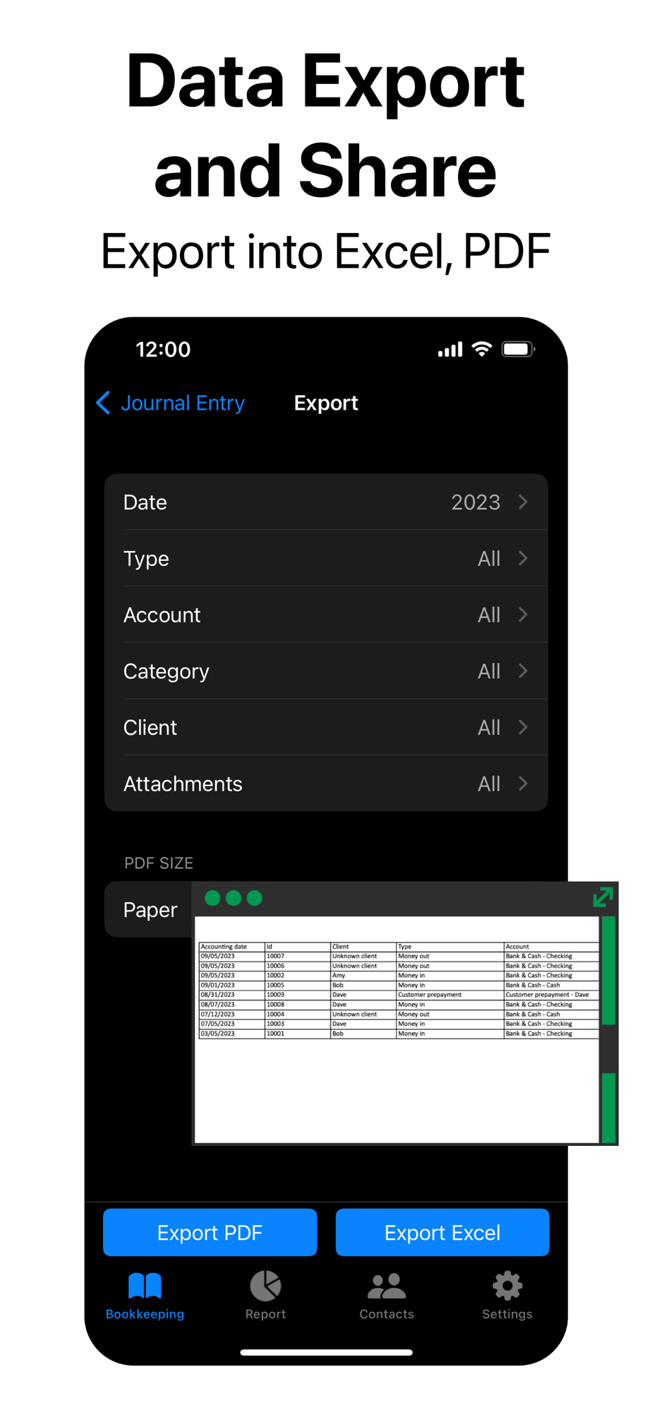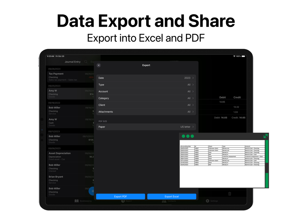 - Seamless Exporting: Easily export transactions, invoices, and accounts to Excel/PDF formats for in-depth analysis.