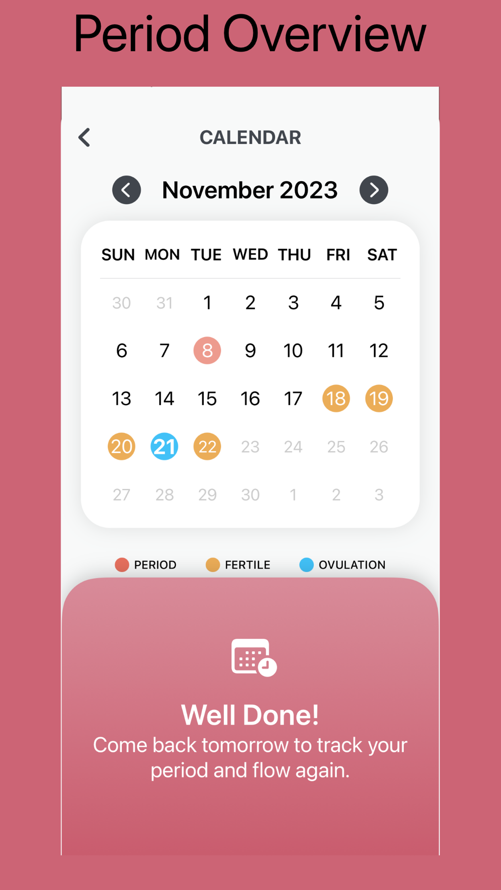 • Irregular or missed period? A single tap and Period & Cycles Tracker has got your back.