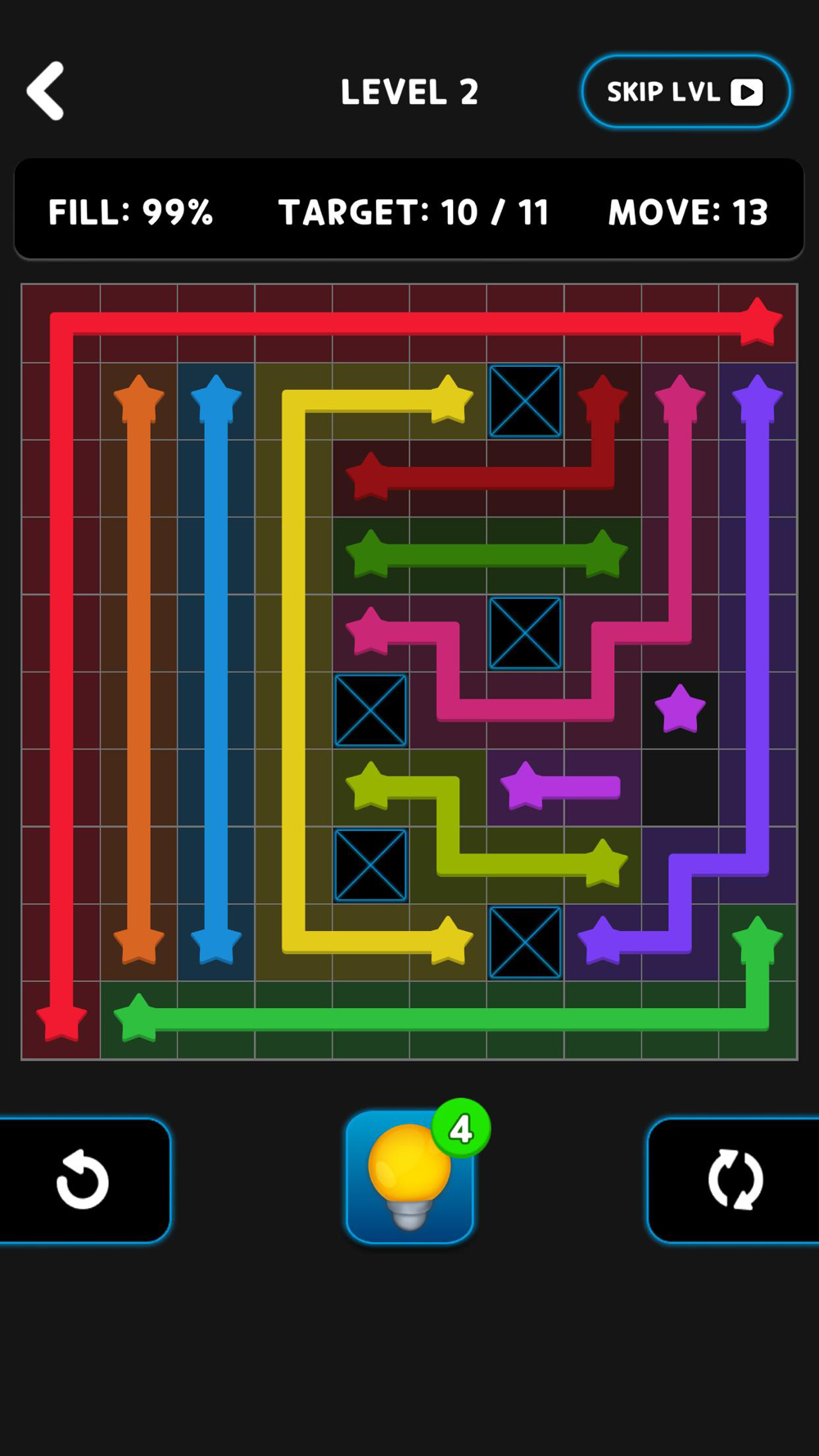 Your strategic prowess will shine as you work to connect all the colored stars adorning the expansive puzzle board! Simply match the colored stars to solve this brain teaser puzzle with thousands of fun levels to play.