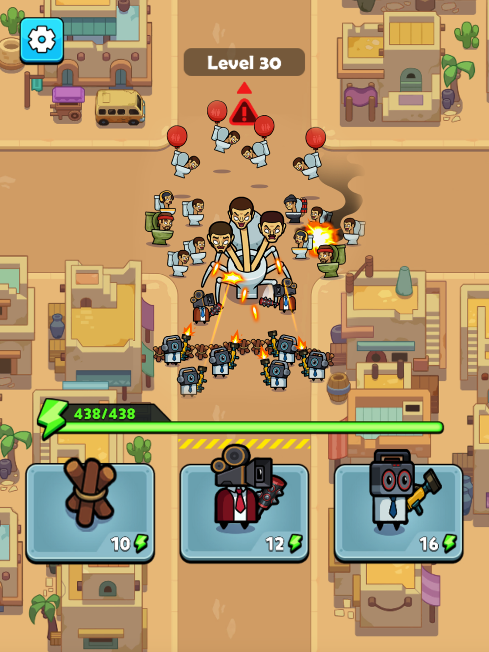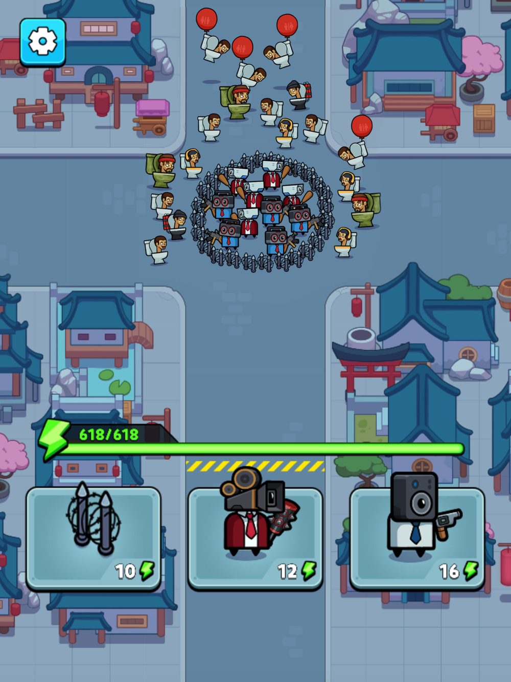 You will visit a post-apocalyptic world in Zombie Idle Defense where the majority of people have evolved into toilet zombies. Help camera head officers who must defend themselves from endless waves of enemies.