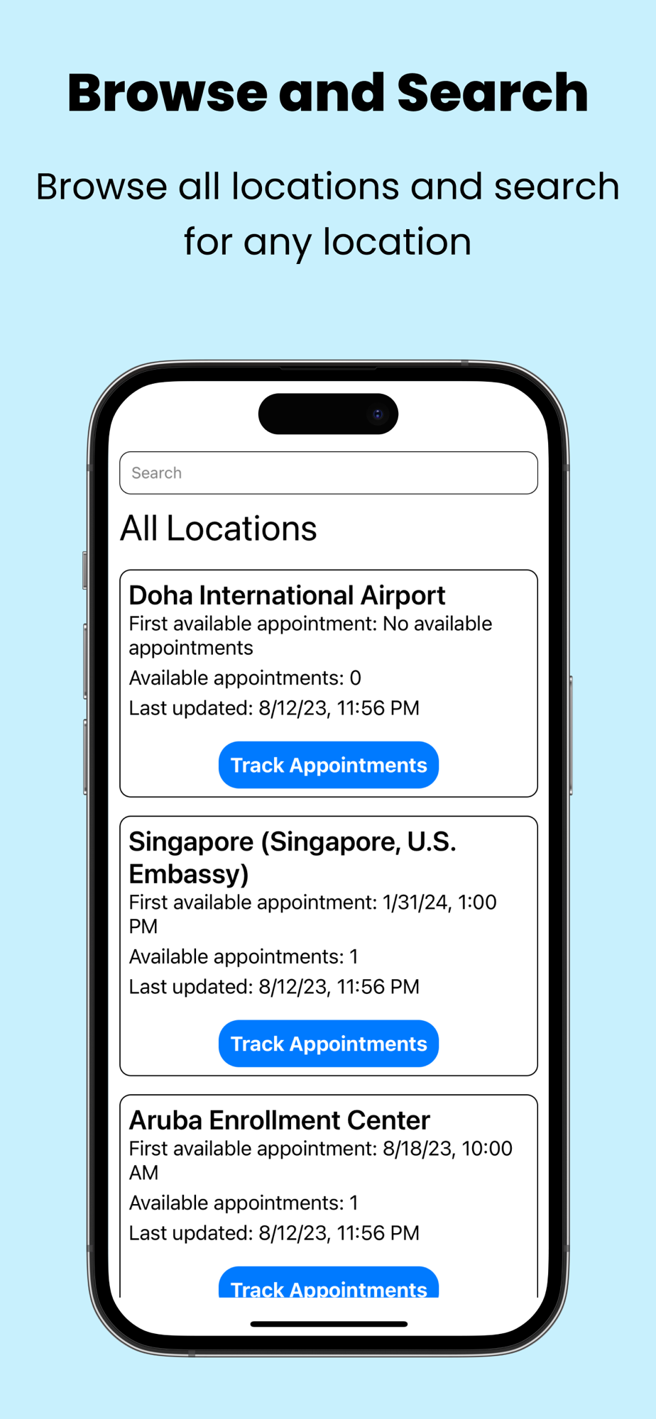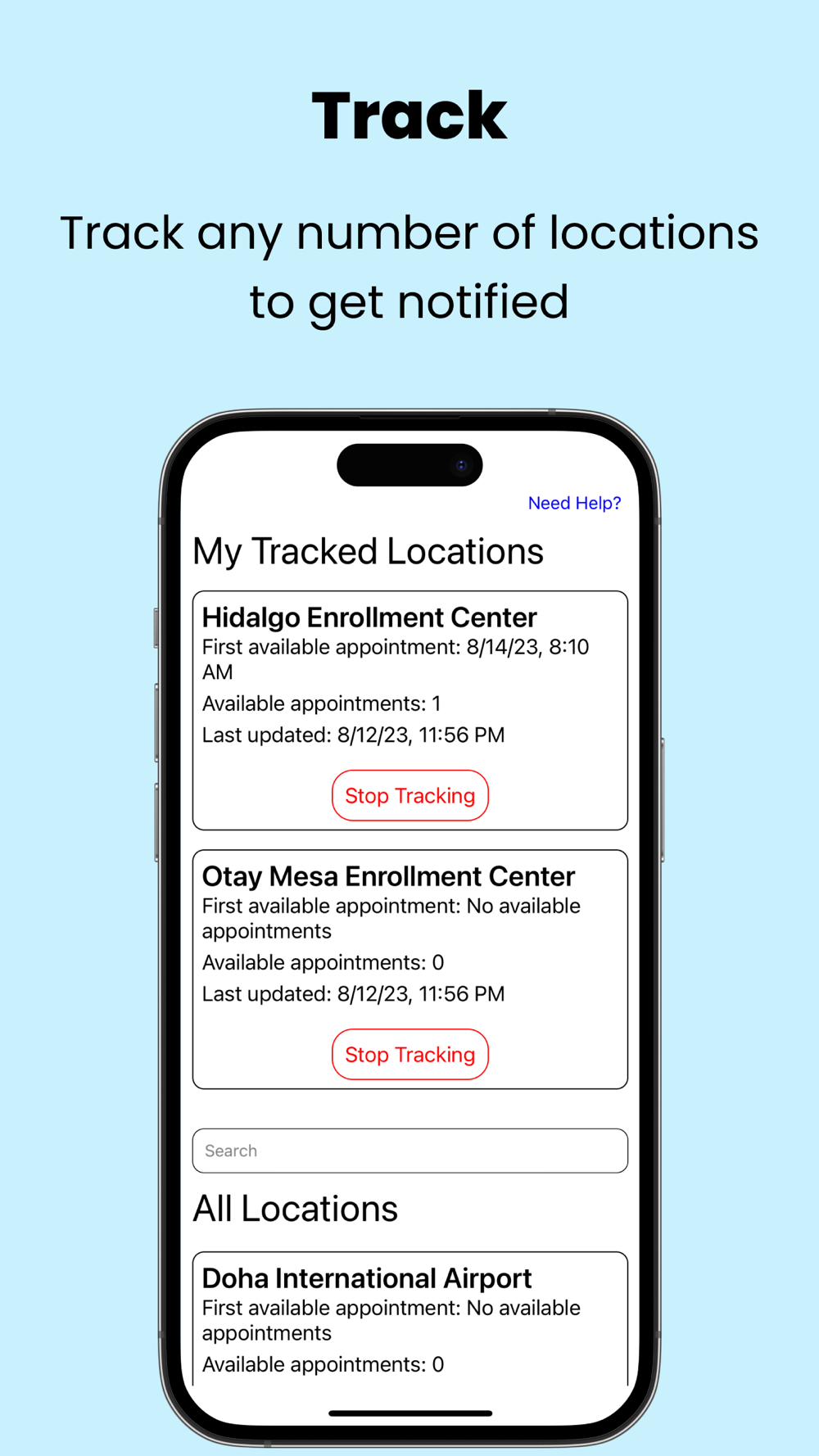 Global Entry Interview Check allows you to track when appointments open at various locations.