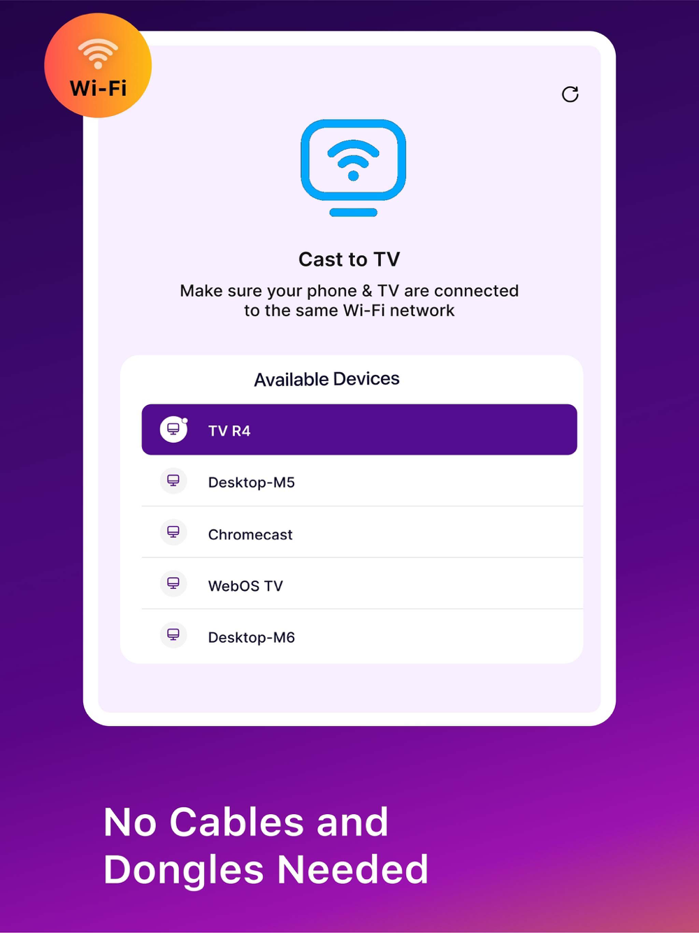 All you need for a successful connection is that both devices must be connected to the same WiFi Network. Select your TV from the list of devices shown inside the app to pair, it only take a minute.