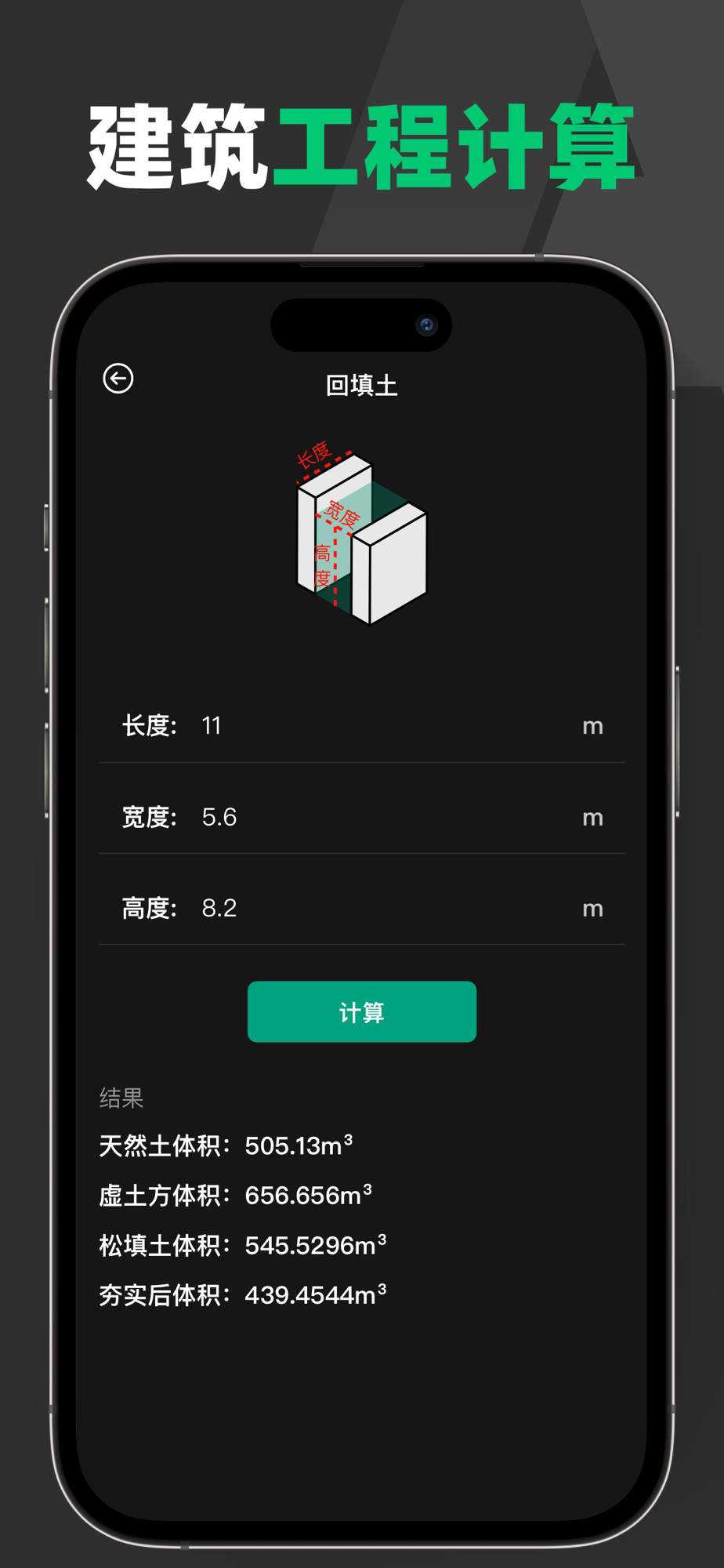 工程计算:多种工程柱体、立方、回填土手机计算更方便。