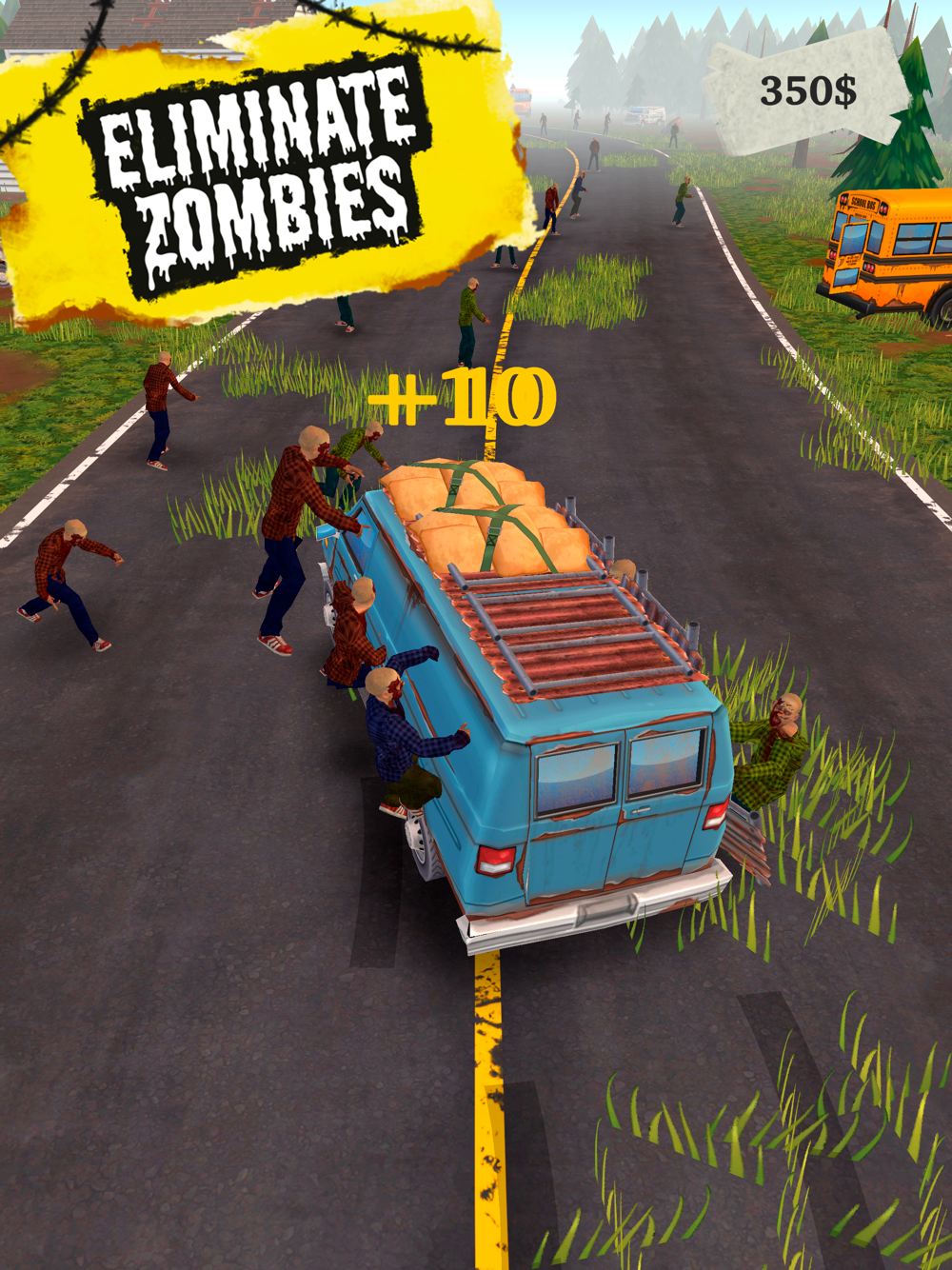Survive in the post-apocalyptic world. Eliminate zombies. Earn money. Buy and upgrade cars.