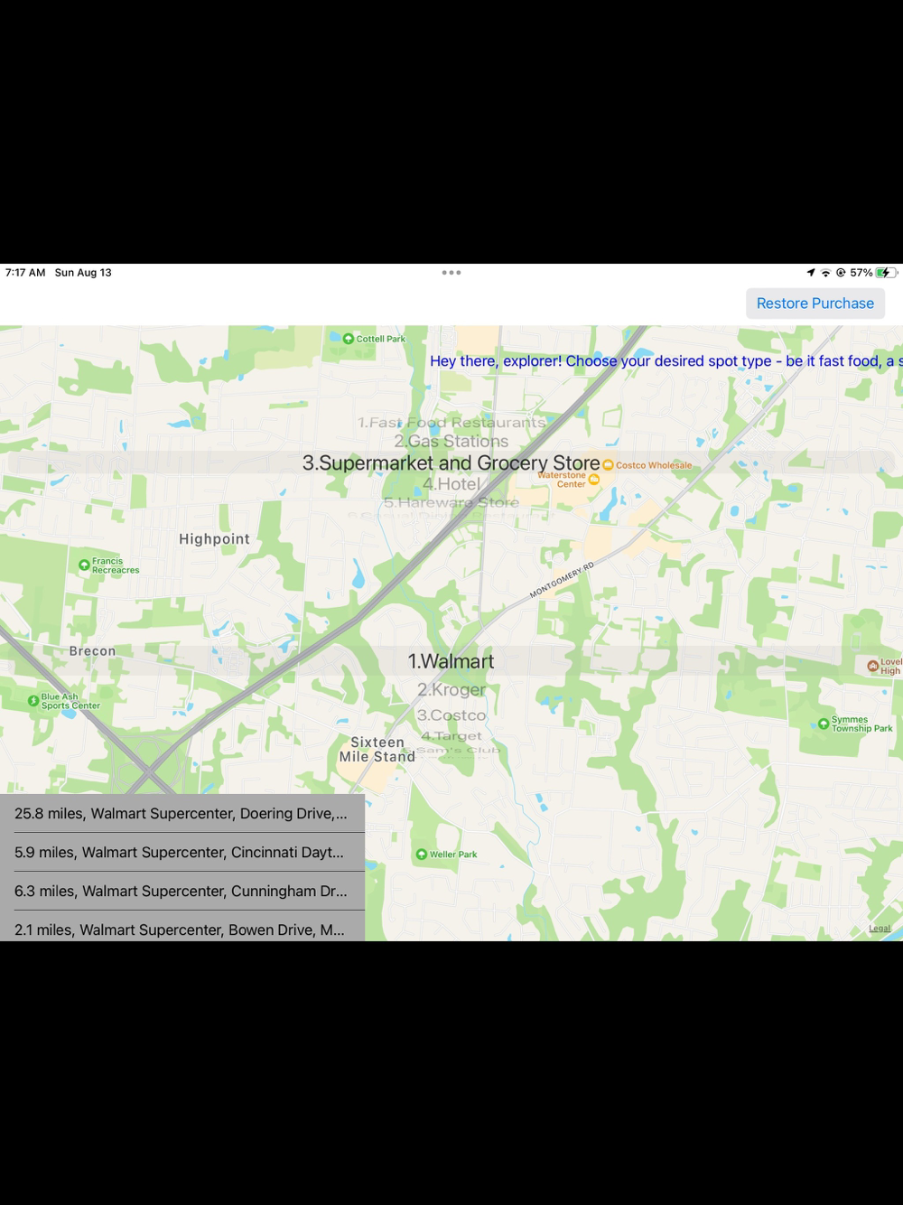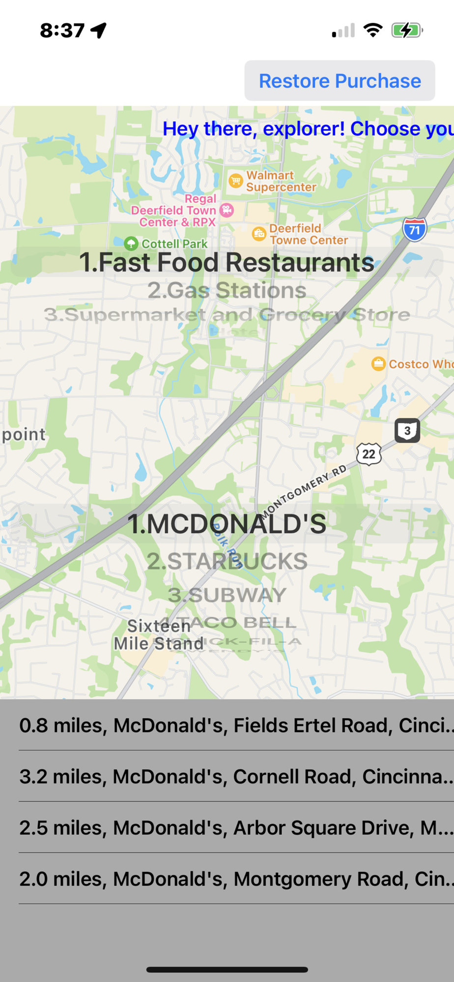 Discover and navigate to essential spots around you with ease! Whether you're craving fast food, need to swing by a supermarket, looking for the nearest restroom, planning a shopping spree, or running low on gas, we've got you covered.