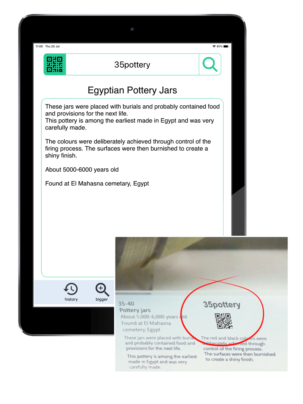 The History function allows your previously scanned objects to be re-visited, even away from the venue.