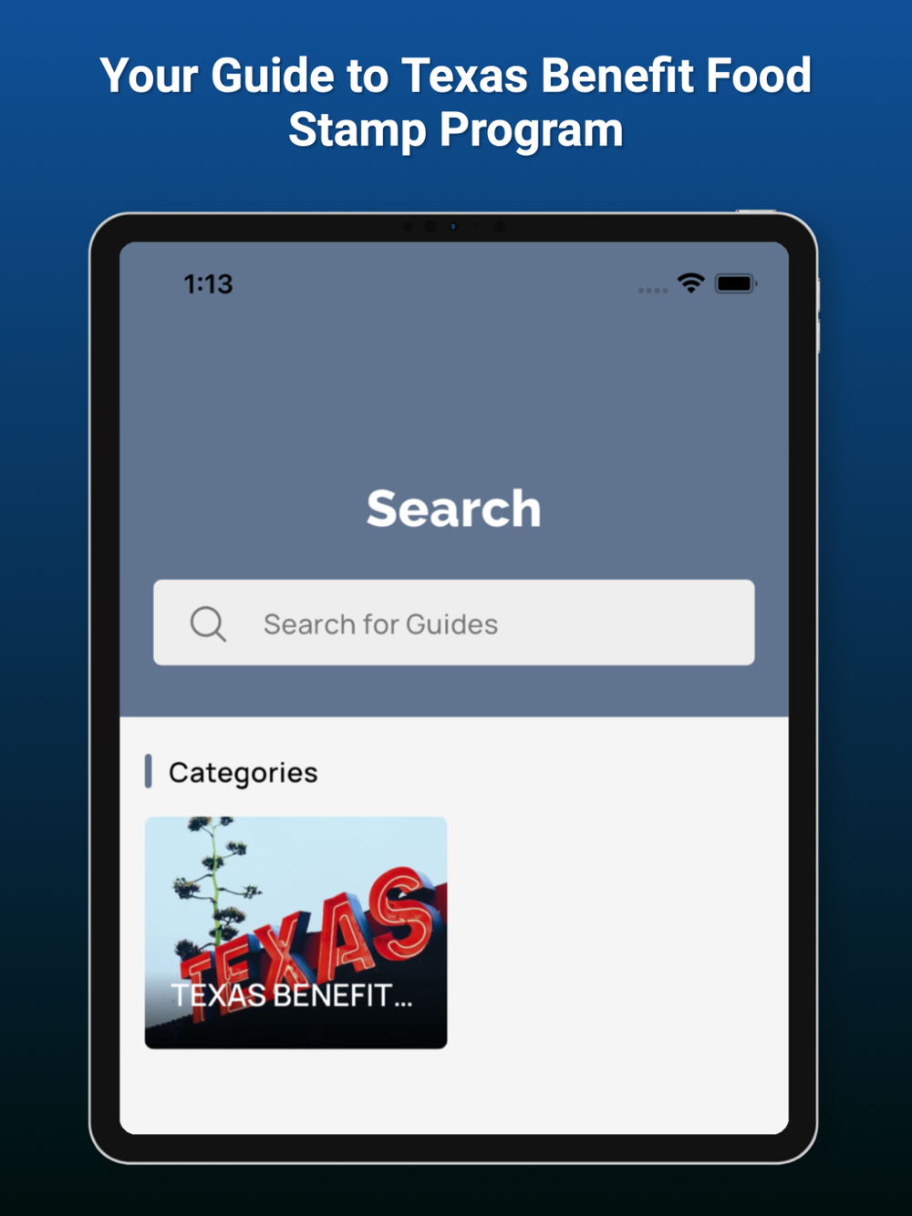 Welcome to the Texas Benefits Food Stamp Guide and Information app – your comprehensive resource for navigating the world of food assistance programs in the state of Texas. Whether you're an individual, a family, a senior citizen, or a veteran, this app is designed to empower you with the knowledge and tools you need to access vital food stamp benefits and improve your quality of life.
