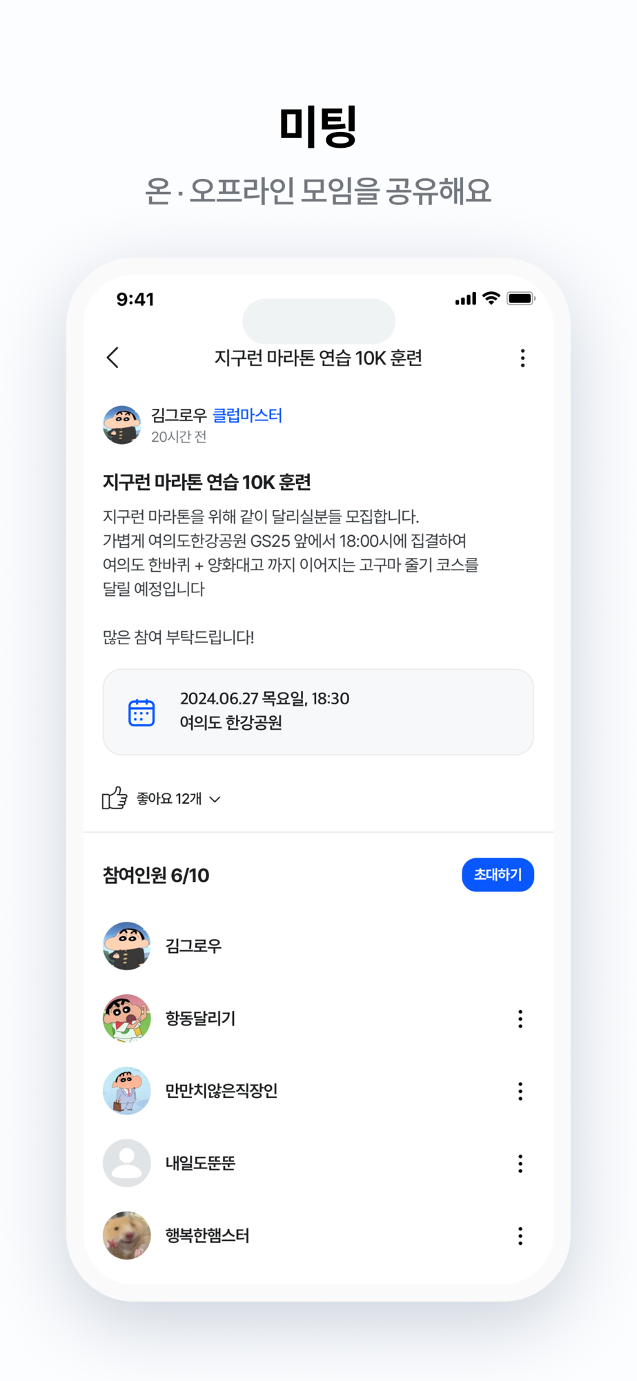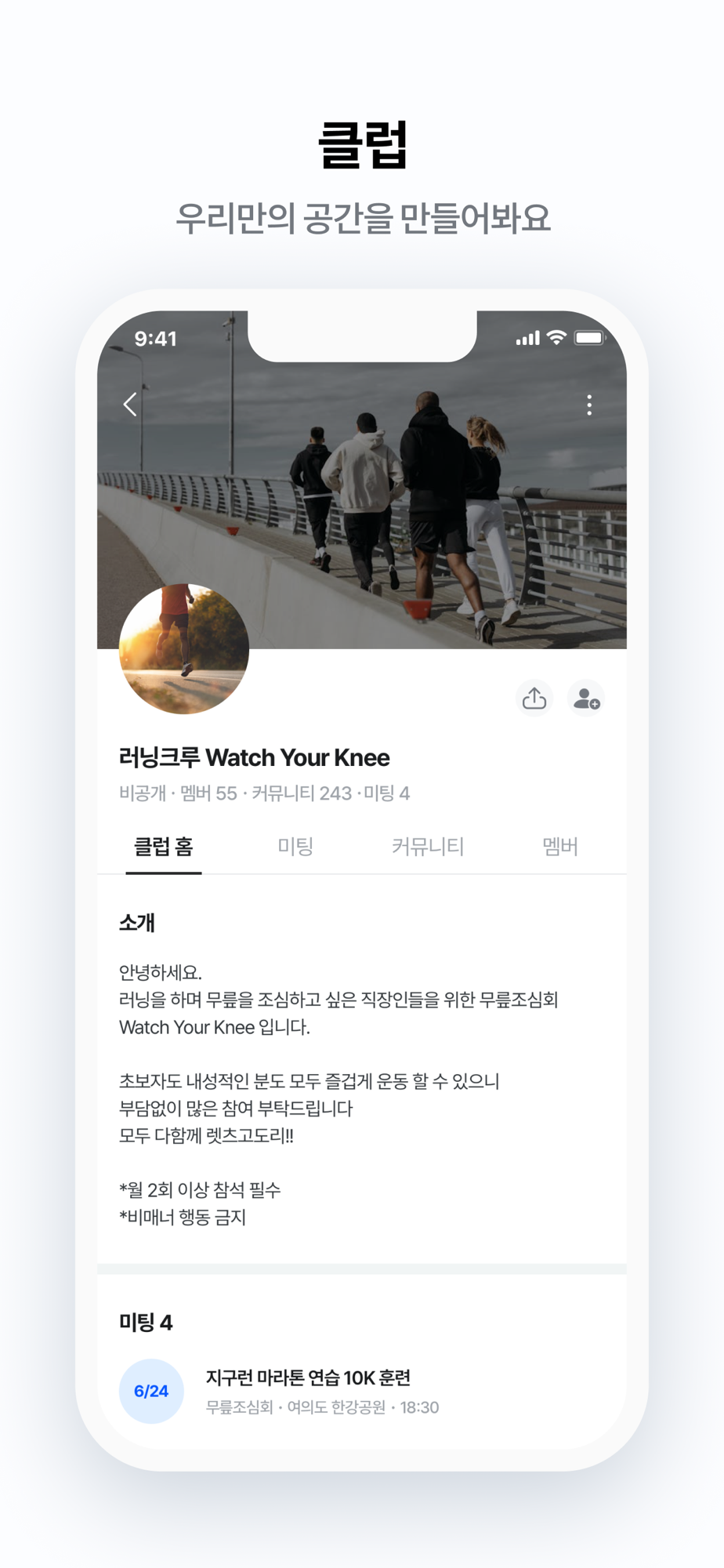 - 게시판, 파일 첨부, 소셜 피드, 1회성 모임 생성, 비공개 개설 지원