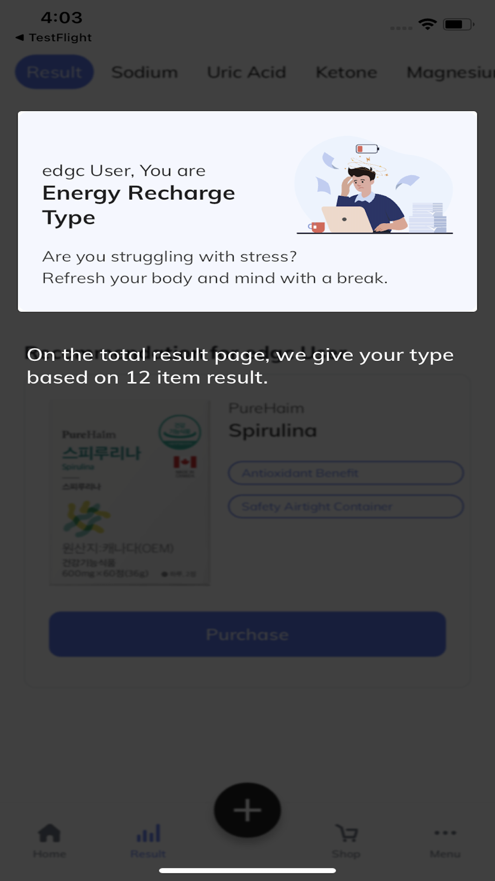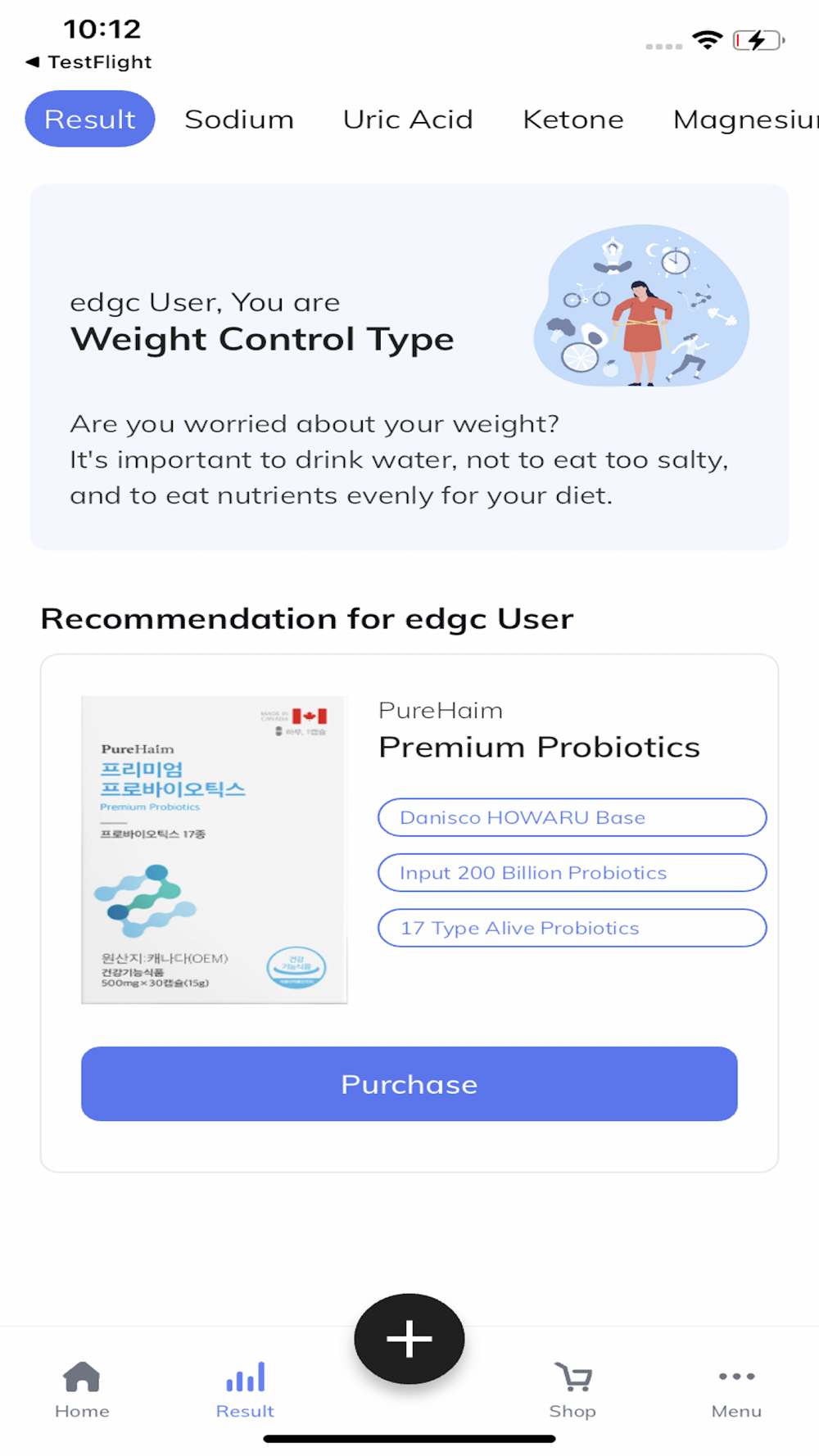 The interpreted results after urine analysis are displayed intuitively and in an easy-to-understand manner. From health information related to the results to personalized solutions, Uriwell offers an all-in-one service from testing to result confirmation and solutions.