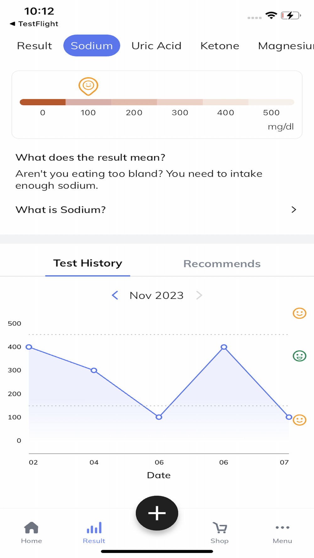 Traditional urine analysis required manual comparison of color charts, making it cumbersome. However, Uriwell automatically interprets results for 12 parameters (sodium, uric acid, ketone, magnesium, bilirubin, protein, active oxygen, glucose, specific gravity, pH, vitamin C, and calcium) with just a photo taken by the camera. Uriwell provides swift and accurate result analysis through its color recognition algorithm.