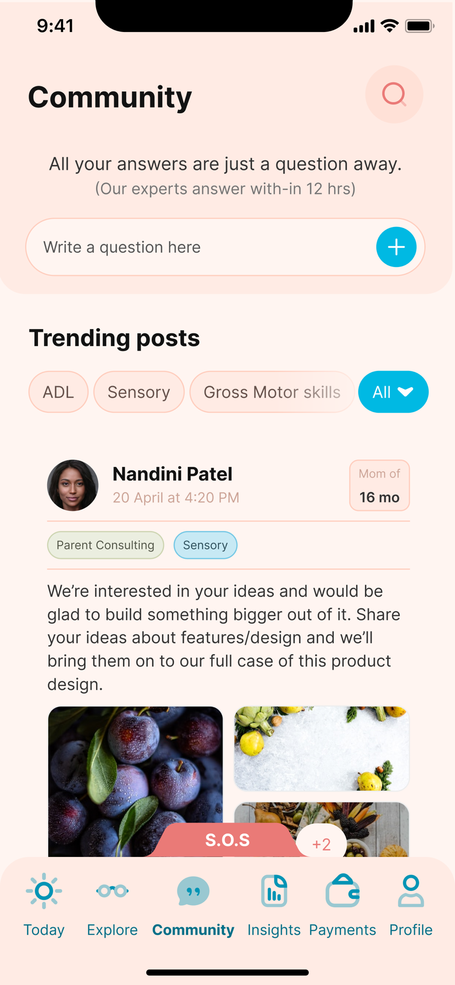 A community section is available, where you can get in touch with other parents and other members of the community as well, like doctors, paediatricians, therapists, etc.