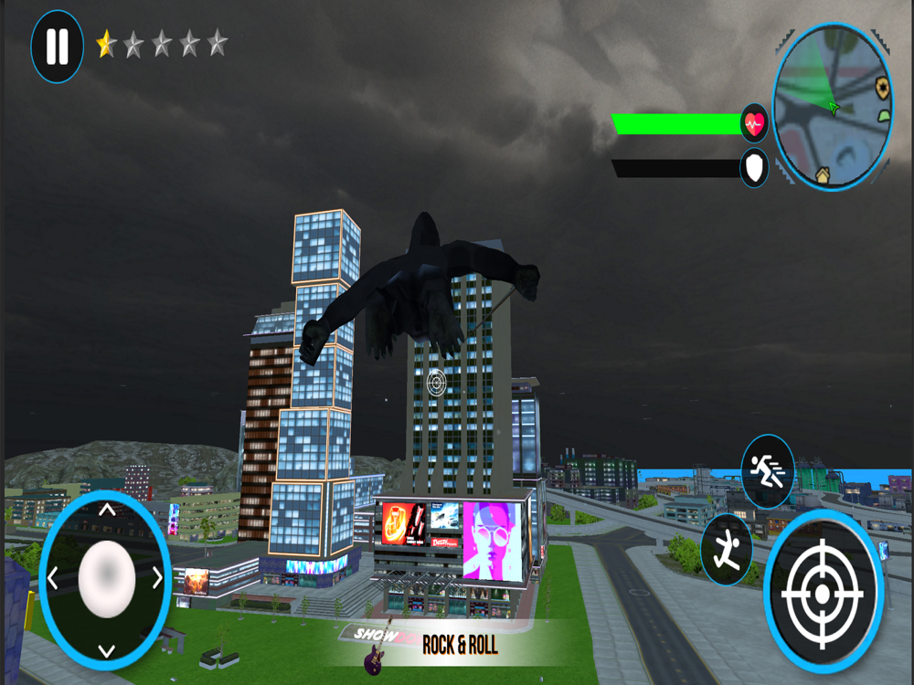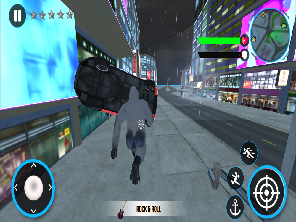 The open world rope hero gorilla game changes as you play, going from bright and busy during the day to mysterious and exciting at night. City Rampage: Gorilla Smash is a game full of action and adventure that's sure to keep you entertained for hours.
