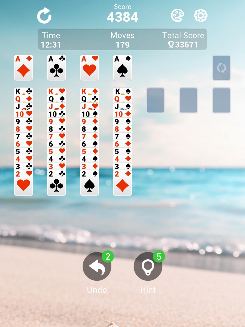 > Move stacks of cards between columns, strategizing your moves.
