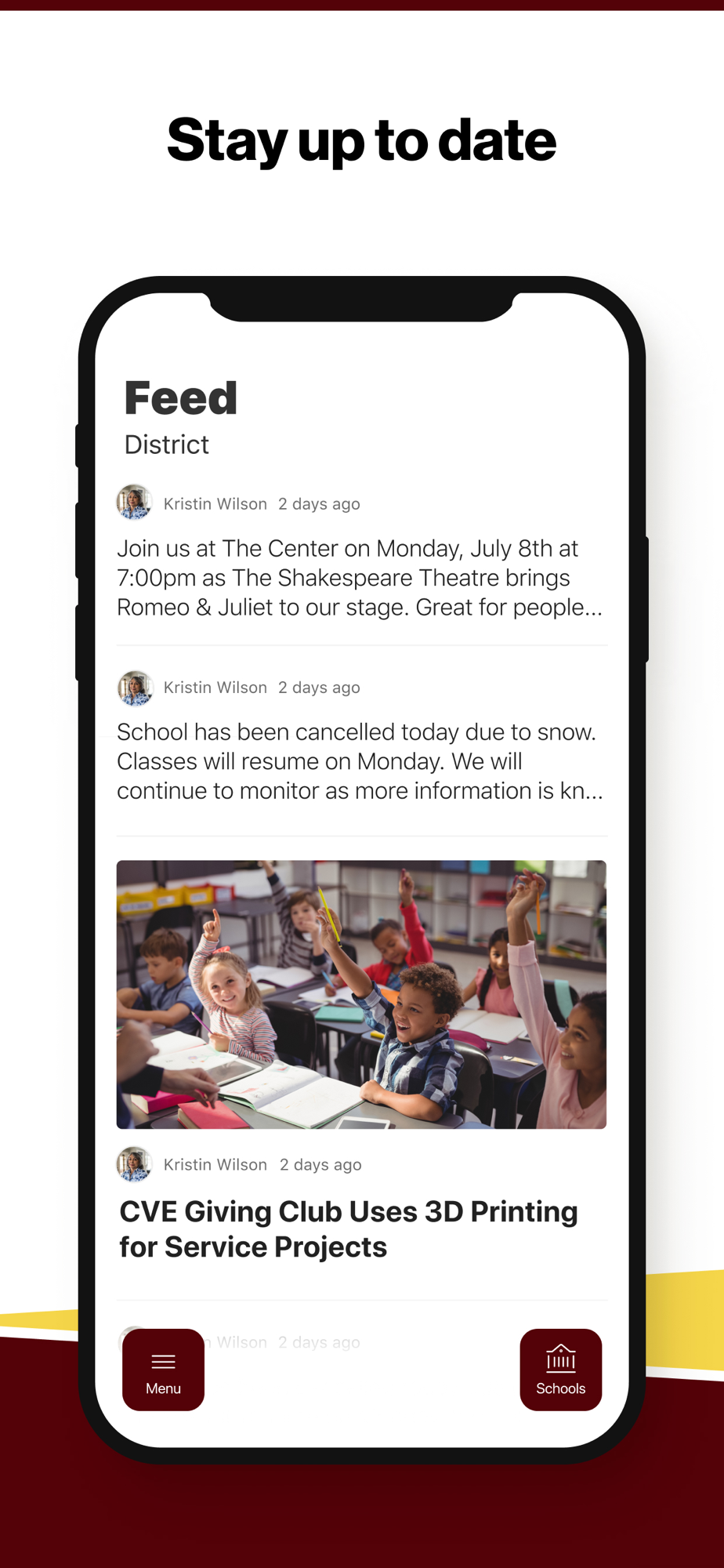In the Live Feed is where you'll find updates from the administration about what's going on in the district right now. Whether that's celebrating a student's success, or reminding you about an upcoming deadline.