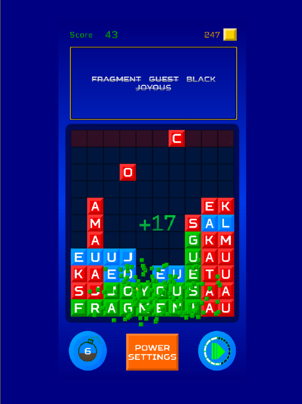 * Much like Tetris, blocks will fall down, but unlike Tetris, it's letters dropping.