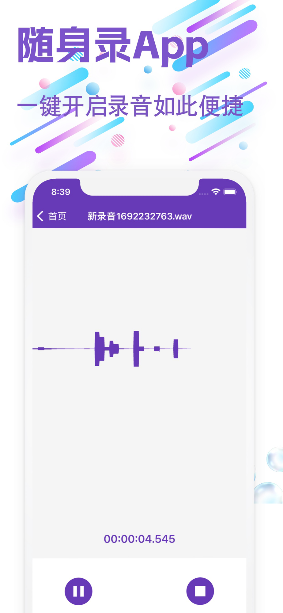 随身录App是一款拥有众多专业功能的全能录音软件、录音机,可以帮助您完成个人语音备忘、会议记录、学习、采访等场景的应用,主要的功能特点包括: