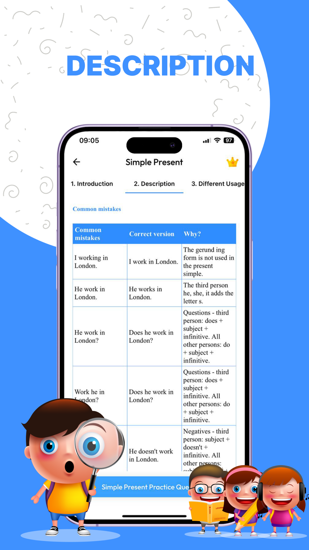 • This app helps you to learn the Tenses of English languages in an effortless and effective way. All the topics in this app are covered in depth and in a simple way.