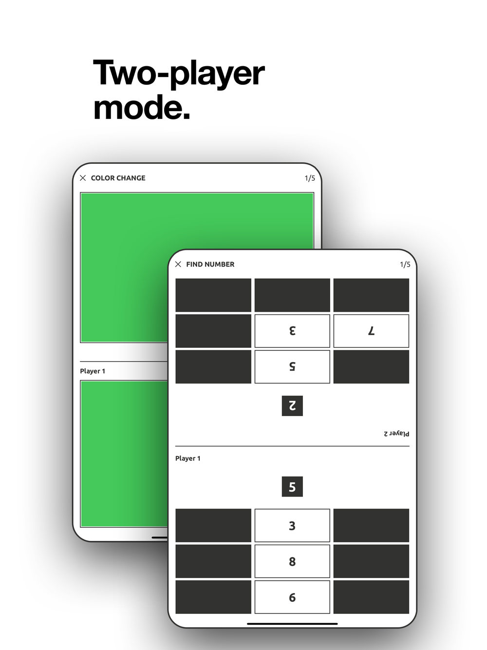 • Two-Player Mode: Compete with friends! Find out which of you is faster by using the screen of one device, which eliminates possible errors in the reaction time.